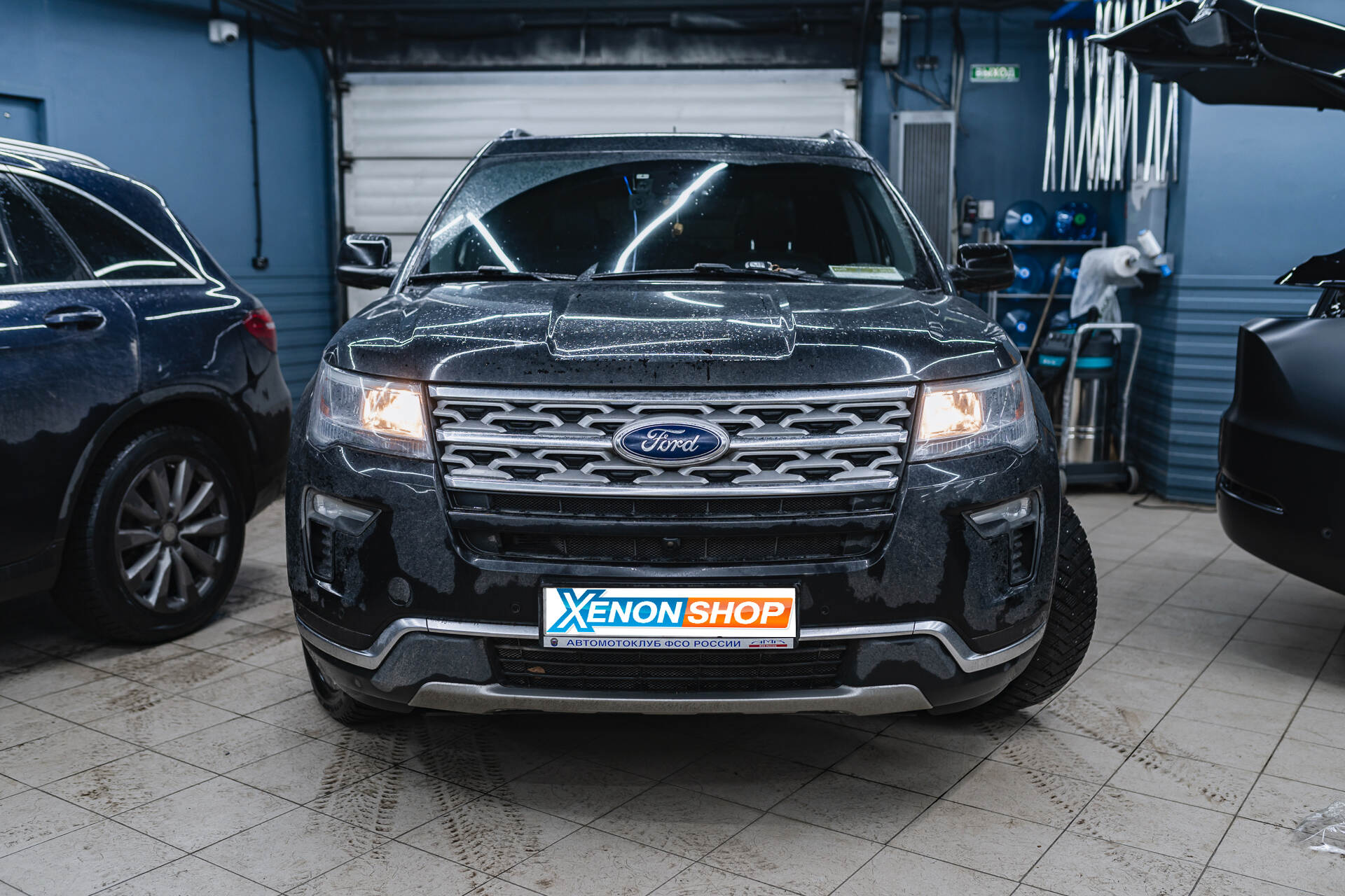 Итоговый свет фар и вид автомобиля после работы.Результат модернизации заслуживает высшей оценки: света со светодиодами XS-Light LED Gen2 H15 стало значительно больше, световой пучок стал шире и плотнее по сравнению с исходным вариантом. При этом владельцу Ford Explorer V не стоит опасаться ослепления встречных водителей, так как линзы эффективно отсекают паразитные засветки, сохраняя четкий контур луча. Помимо выдающихся характеристик, замена преобразила облик автомобиля: яркий белый свет выглядит гораздо престижнее и современнее устаревшего желтого галогена.