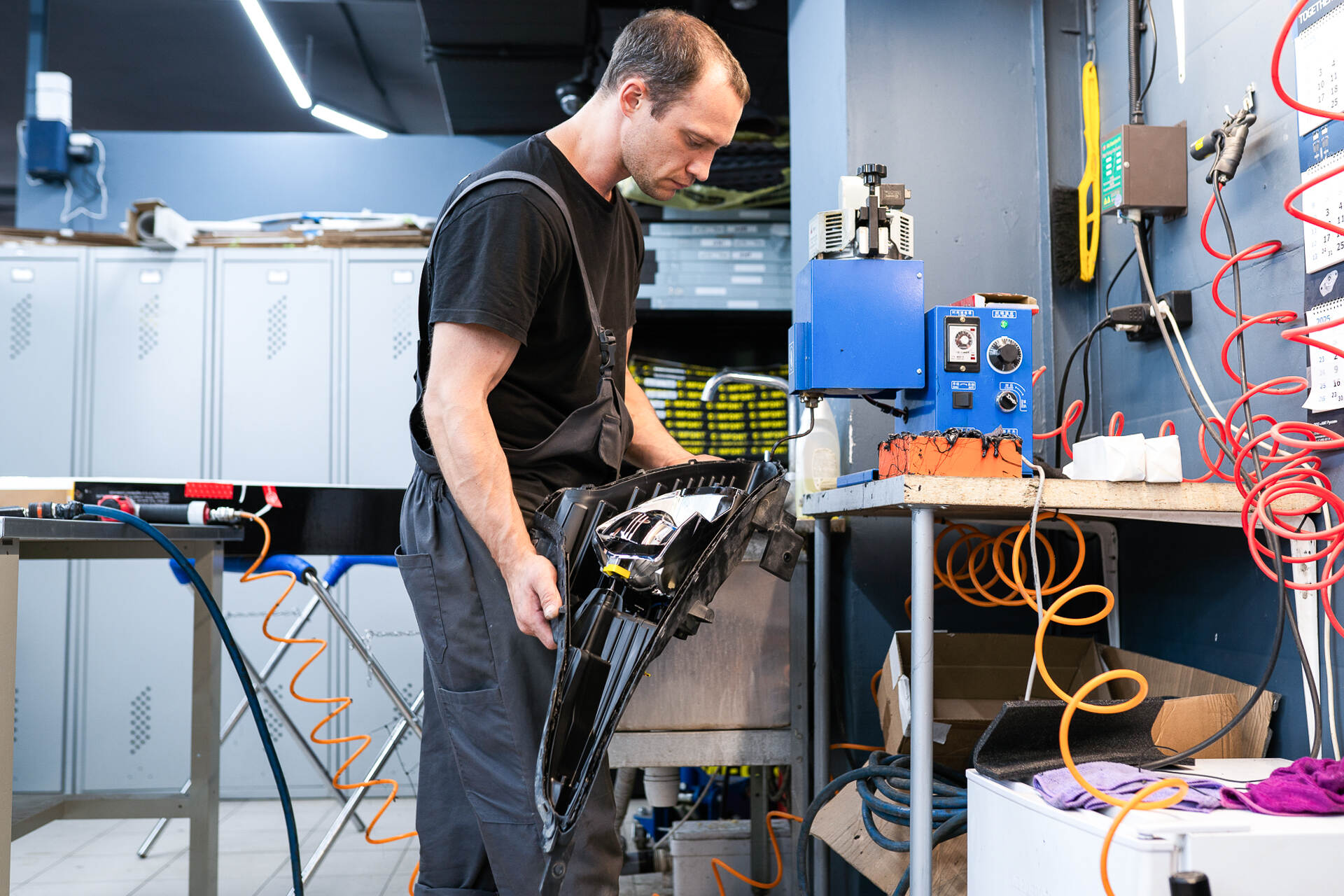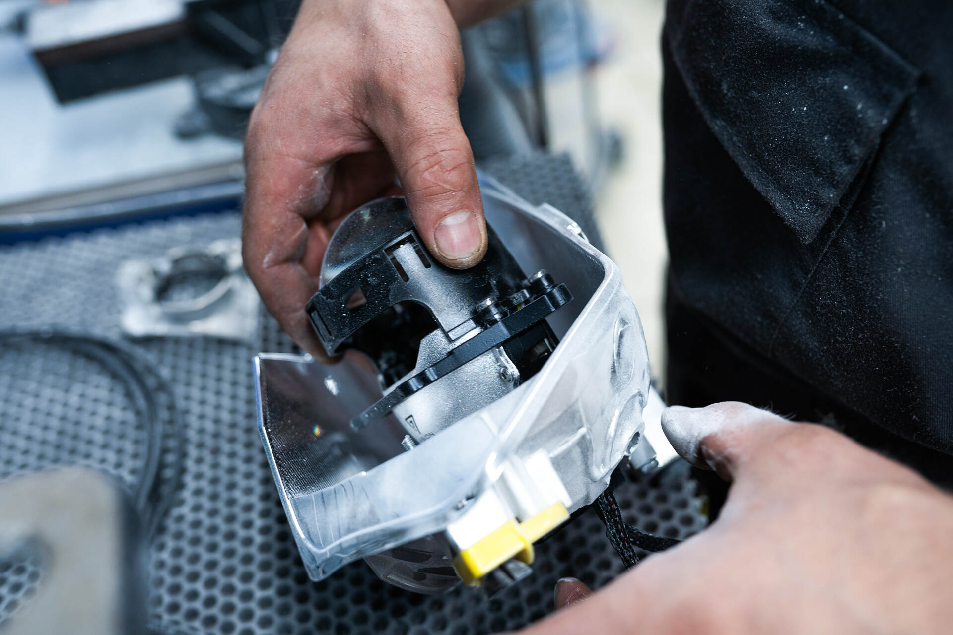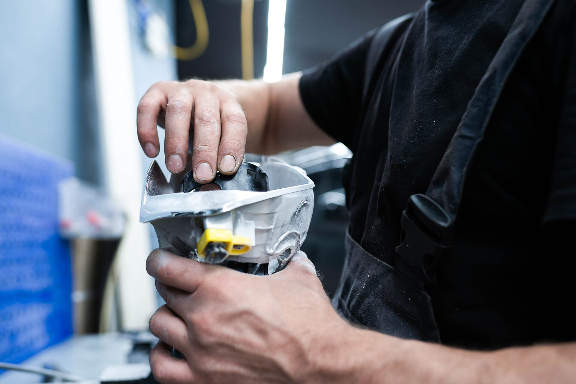 Демонтаж и разбор фар. Пилим отражатели и устанавливаем новые линзы.Установка LED-линз в фары Киа Рио Х-лайн начинается с частичной разборки передней части автомобиля. Мы скидываем бампер, после чего демонтируем обе фары и помещаем их в промышленную печь. Под воздействием высокой температуры заводской герметик размягчается, что позволяет аккуратно отделить стекло от корпуса. На следующем этапе производится разборка фар и извлечение штатных отражателей: в них создаются монтажные отверстия для организации посадочных мест под светодиодные линзы Vision TRI-LED Ultimate Series Soft 4800K. Фиксация модулей осуществляется с помощью шпилек, что обеспечивает более надежное крепление по сравнению с креплением на гайках.