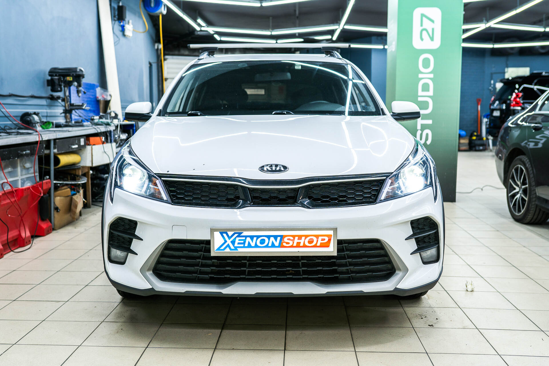 Представляем вашему вниманию работу по модернизации освещения автомобиля KIA Rio X-Line. Автомобиль изначально комплектовался стандартной рефлекторной галогенной оптикой, обеспечивающей посредственное качество света даже в сравнении с галогенными линзованными фарами. Ключевое отличие линзовой оптики заключается в формировании четко контролируемого светового пучка с выраженной светотеневой границей, тогда как рефлектор создает лишь рассеянные световые пятна. Мы установим в фары автомобиля премиальные светодиодные линзы Vision TRI-LED Ultimate Series Soft 4800K, что позволит достичь кардинального улучшения освещения.
