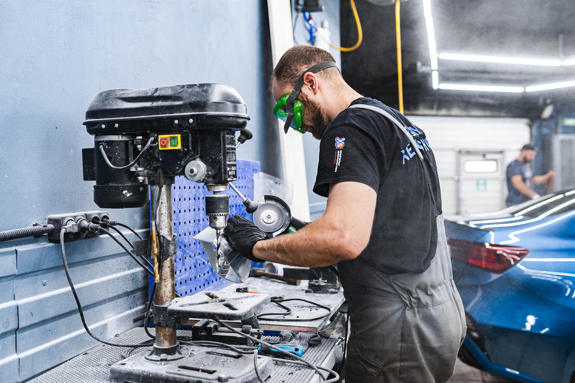 Разбираем фары и извлекаем из них отражатели.Установка линз в фары Киа Рио Х начинается с демонтажа бампера и фар. Для разборки фары помещаются в промышленную печь, где под воздействием температуры размягчается герметик, фиксирующий стёкла фар на их основании. После вскрытия из корпусов удаляются штатные отражатели, в которых формируем монтажные отверстия для организации посадочных мест модулей. Светодиодные линзы XS-Light X2 Compact устанавливаются в подготовленные гнезда и фиксируются на шпильках. Процесс модернизации головного света в данном случае занимает в среднем 6-8 часов, что позволяет принять автомобиль утром и вернуть владельцу к концу рабочего дня с полностью обновленным автосветом.