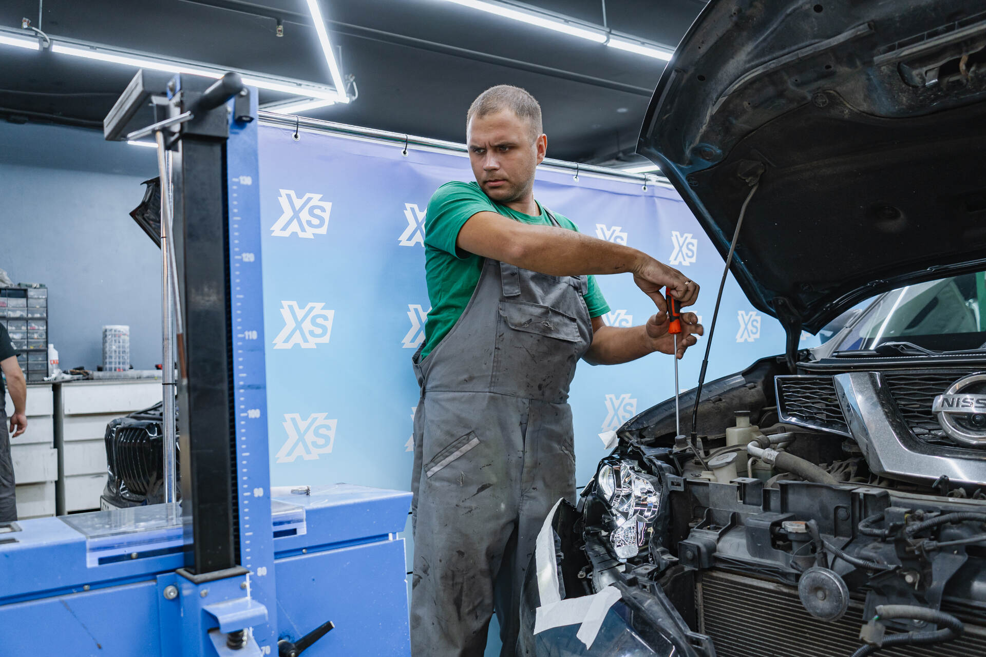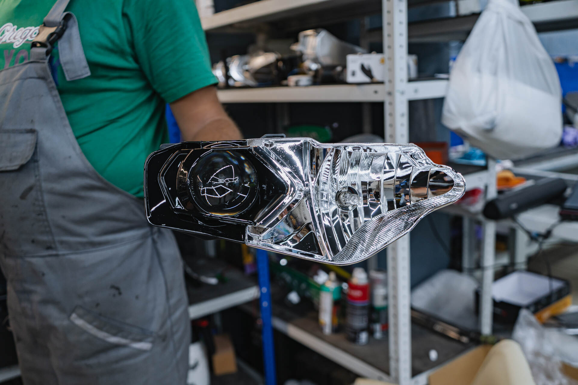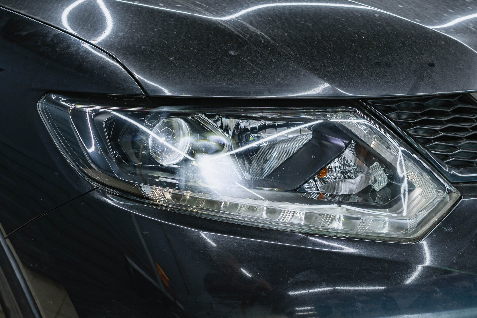 Регулируем положение новой оптики до герметизации фар, а также сборка фар.Перед финальной герметизацией мы устанавливаем фары с новыми линзами на Nissan X-Trail T32 для точной настройки положения модулей. С помощью специального оборудования мы выставляем оптику относительно горизонта и примеряем декоративные маски. После регулировки фары снова демонтируем для герметизации, а после завершения этого процесса окончательно возвращаем их на автомобиль. Пока фары были разобраны, мы также отчистили их изнутри щелочью от застарелой грязи, а завершающим шагом становится полировка стекол фар абразивными составами с внешней стороны, что значительно повышает их светопропускную способность и восстанавливает первоначальную прозрачность.