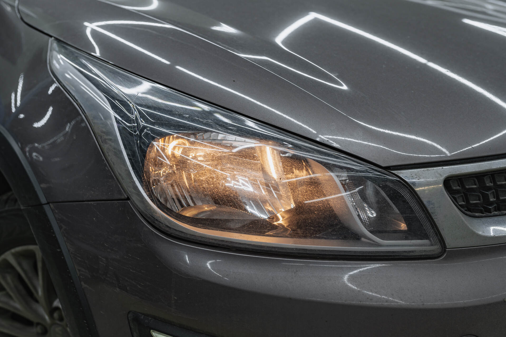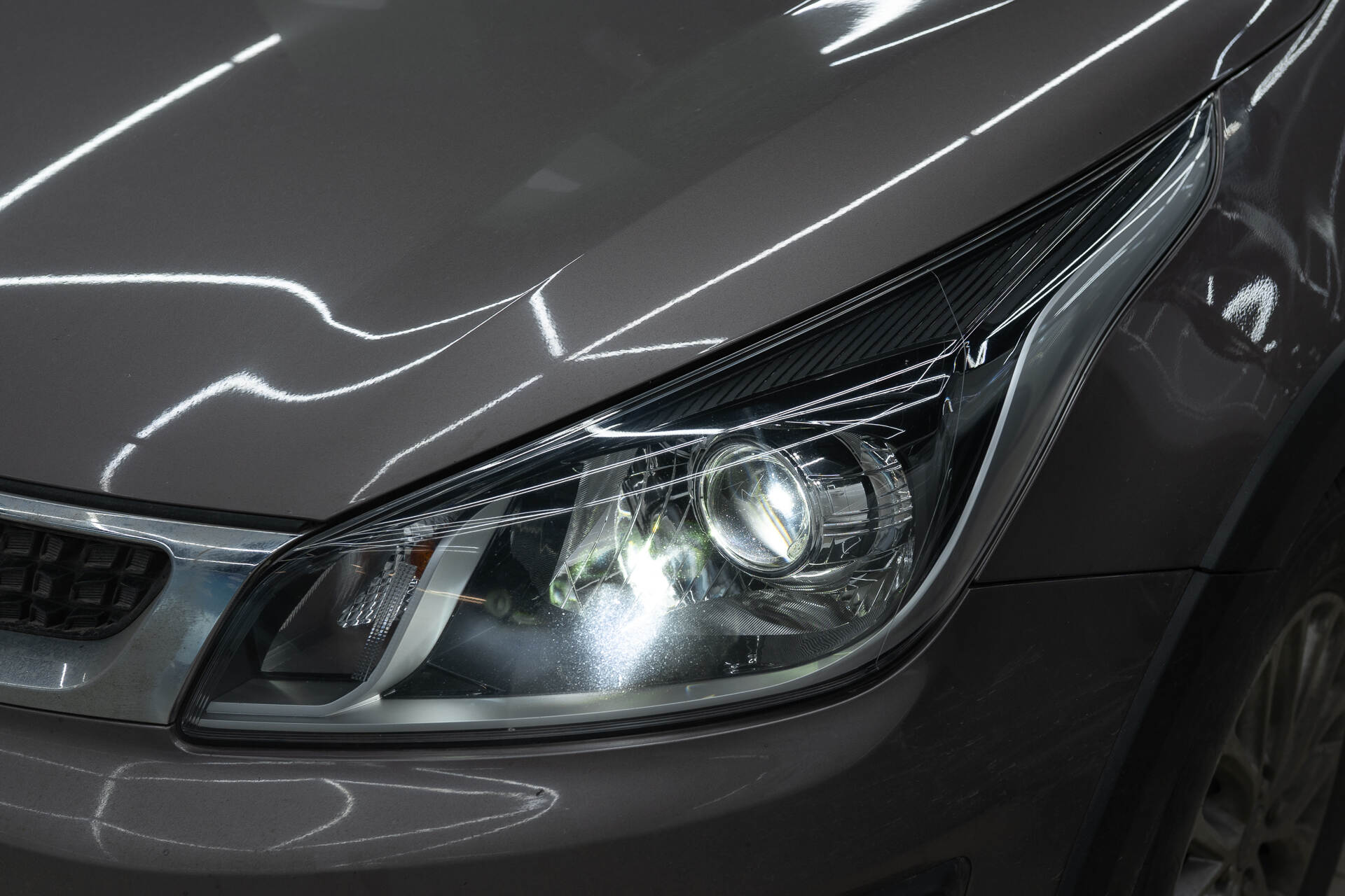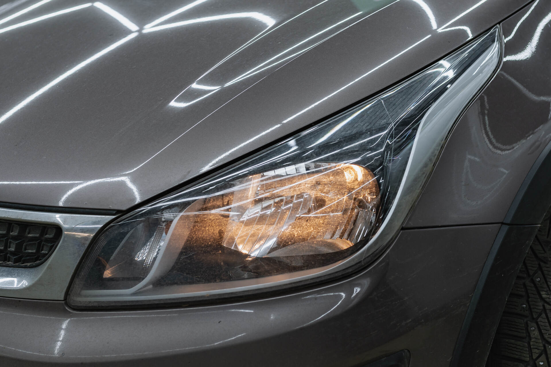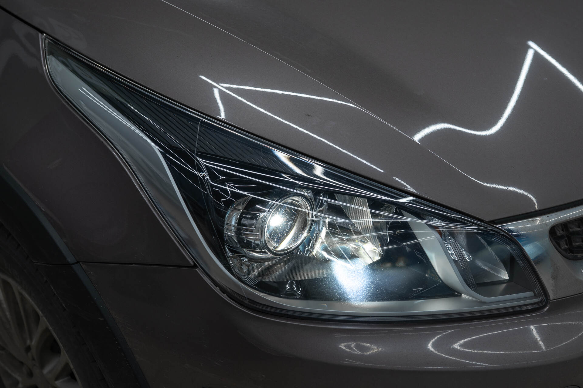Рефлекторная оптика изначально уступает линзовой, так как формирует лишь два размытых световых пятна вместо четкой и объемной светотеневой границы. Кроме того, штатные галогенные лампы значительно проигрывают современным светодиодам в яркости и не способны обеспечить популярный среди автовладельцев чистый белый спектр свечения. В случае с данным KIA Rio (2018) ситуацию усугубляло крайне неудовлетворительное состояние стекол: сильное помутнение и деградация заводского лака создавали дополнительный барьер для светового потока. Сочетание несовершенной конструкции отражателя с износом внешних элементов сводило эффективность головного света к минимуму, делая эксплуатацию автомобиля в темноте некомфортной.