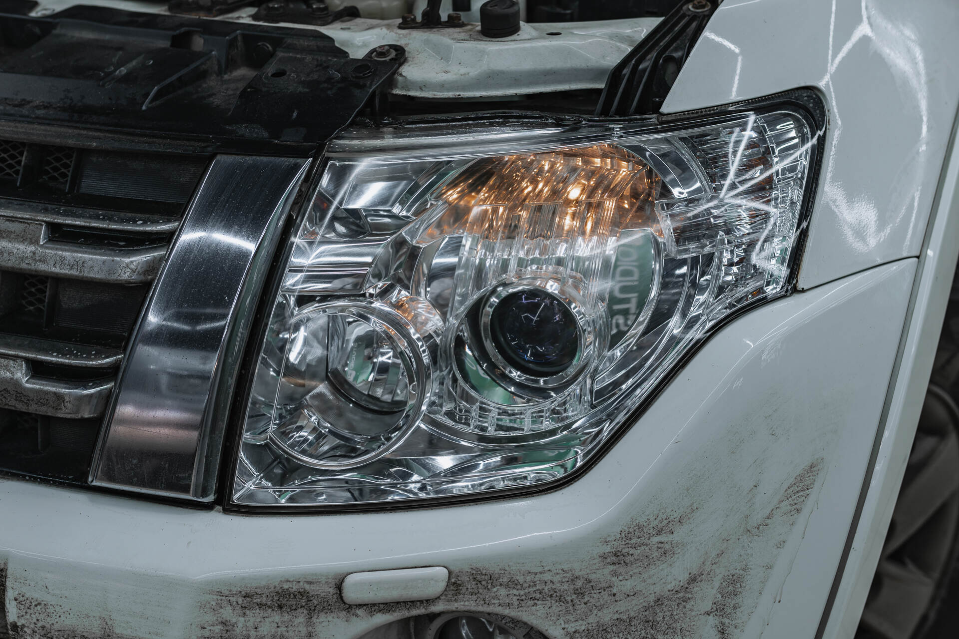 Вид фары и автомобиля в момент обращения.Для восстановления головного освещения Mitsubishi Pajero 4 используется оригинальный блок Mitsubishi W3T23371, W3T21571, который демонстрирует исключительную надежность. Высокое качество этого устройства подтверждается нашей официальной гарантией, распространяющейся как на само оборудование, так и на процедуру его установки. Выбор в пользу сертифицированного оригинала позволяет на долгие годы забыть о проблемах с автосветом, поскольку такие компоненты рассчитаны на многолетнюю бесперебойную эксплуатацию без нареканий. Опять же, если исключить их залив водой, что обычно происходит при запотевании фар.