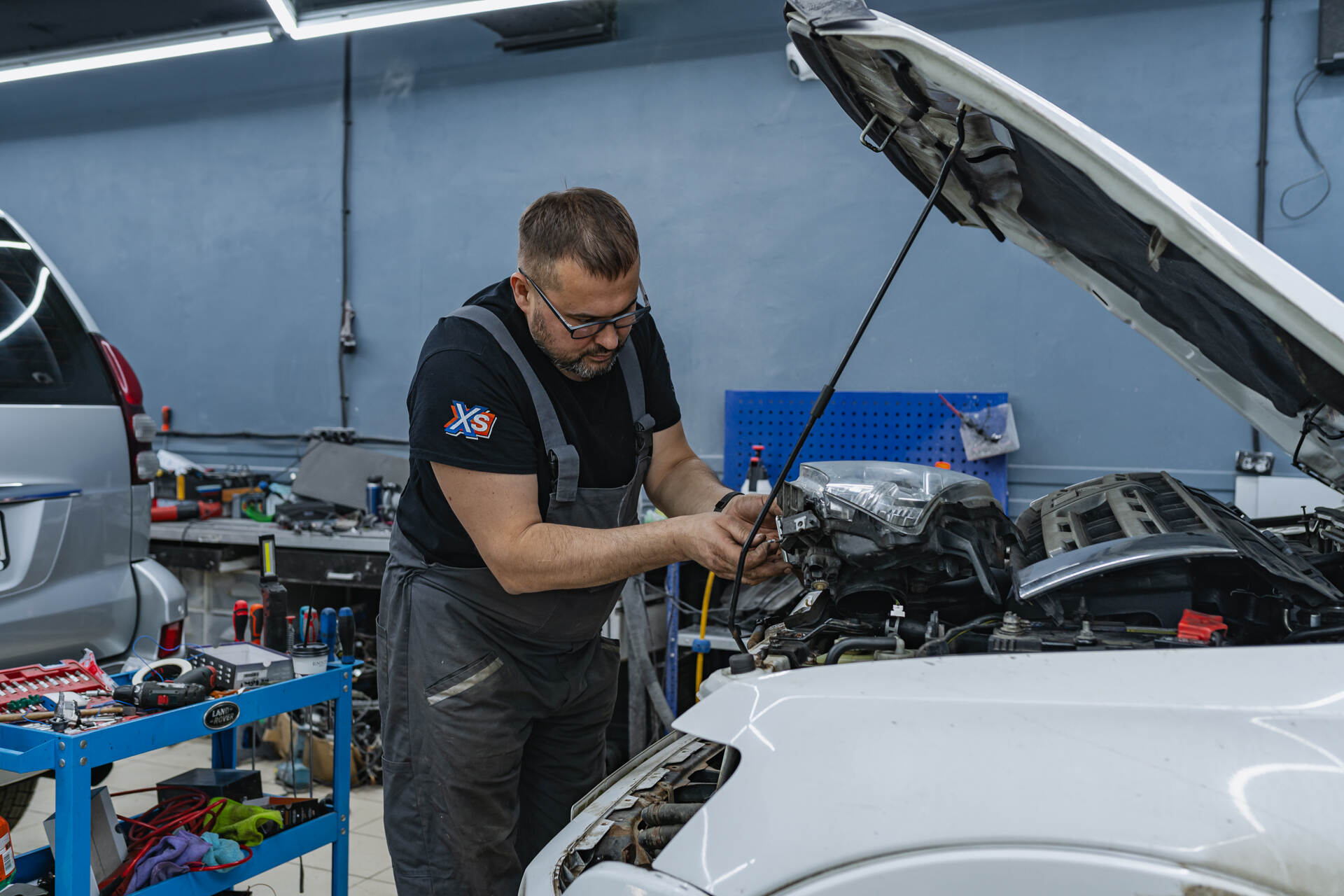 Работаем с электрикой фары.После успешной установки нового блока розжига мы провели комплексное тестирование системы, подтвердившее ее полную работоспособность. Теперь, когда функциональность головного света восстановлена, остается лишь завершить сборку и вернуть автомобиль владельцу. В результате проведенных работ левая фара Mitsubishi Pajero 4 вновь светит – инсталляция и последующее программирование блока розжига позволили вернуть оптике все штатные режимы работы. Тем не менее мы настоятельно рекомендуем не игнорировать первые признаки образования конденсата внутри фар и обращаться в сервис своевременно, чтобы избежать поломки дорогостоящей электроники – именно запотевание фар становится причиной такой проблемы.