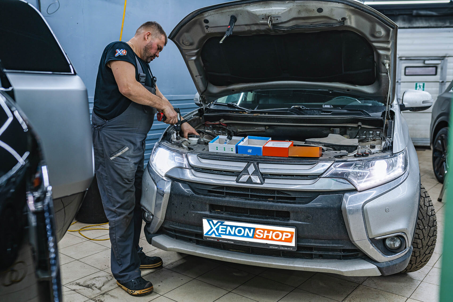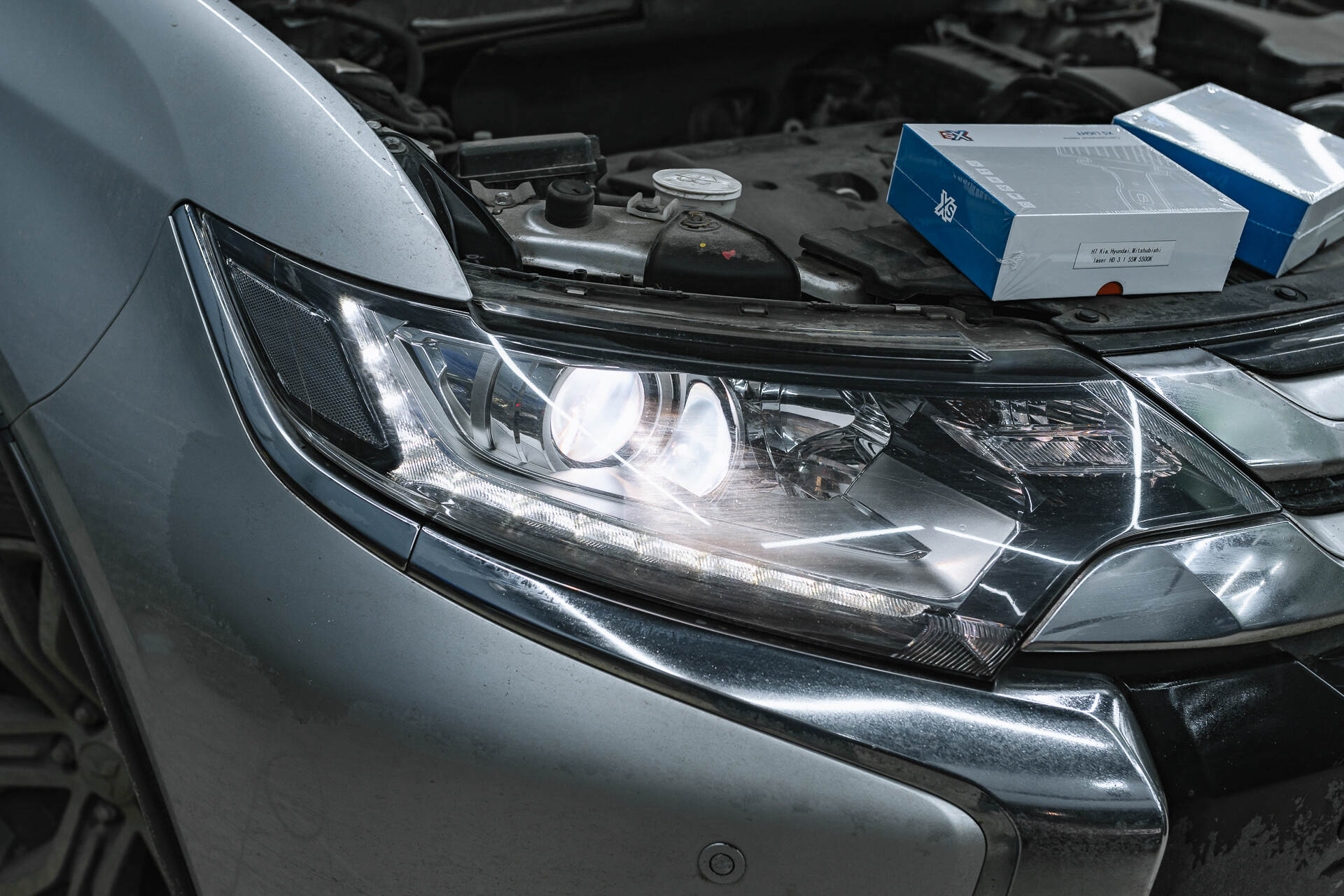 Выбирая качественные светодиоды для противотуманных фар, владелец Mitsubishi Outlander III решил одновременно с ближним светом обновить и ПТФ. Штатный галоген существенно уступает современным LED-технологиям по долговечности, качеству освещения и энергоэффективности. В рамках данного кейса мы интегрируем светодиодные лампы XS-Light LED H11 в противотуманки, которые минимум вдвое увеличивают яркость и меняют заводской желтый оттенок на эстетичный чисто-белый свет. А также установим в ближний света светодиоды H7 XS-Light LED HD3 со специальным креплением под фары Mitsubishi.