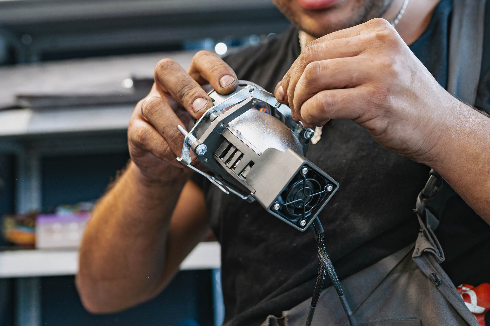 Замена линз Инфинити ЕХ25 в среднем занимает в среднем один рабочий день – утром автомобиль принимаем в своем цехе, а вечером отдаём владельцу с обновлённым головным светом, хотя точные сроки зависят от загруженности сервиса и всегда согласовываются индивидуально. Процесс начинается с демонтажа бампера и извлечения фар, которые отправляются в промышленную печку на разгерметизацию. После разбора штатные ксеноновые модули заменяются на современные светодиодные линзы Vision Tri-led Ultimate Series 5500K. Установка новых компонентов производится с помощью специальных переходных рамок, что обеспечивает надежную фиксацию оборудования без нарушения целостности заводских креплений.