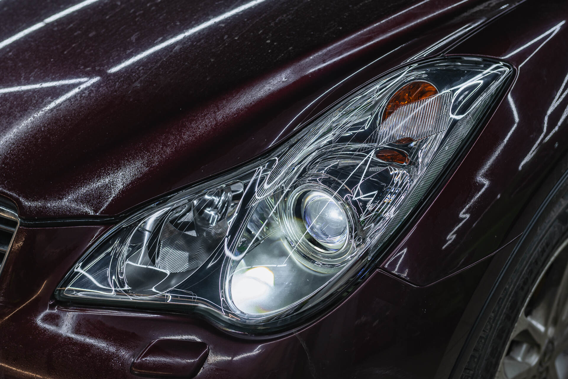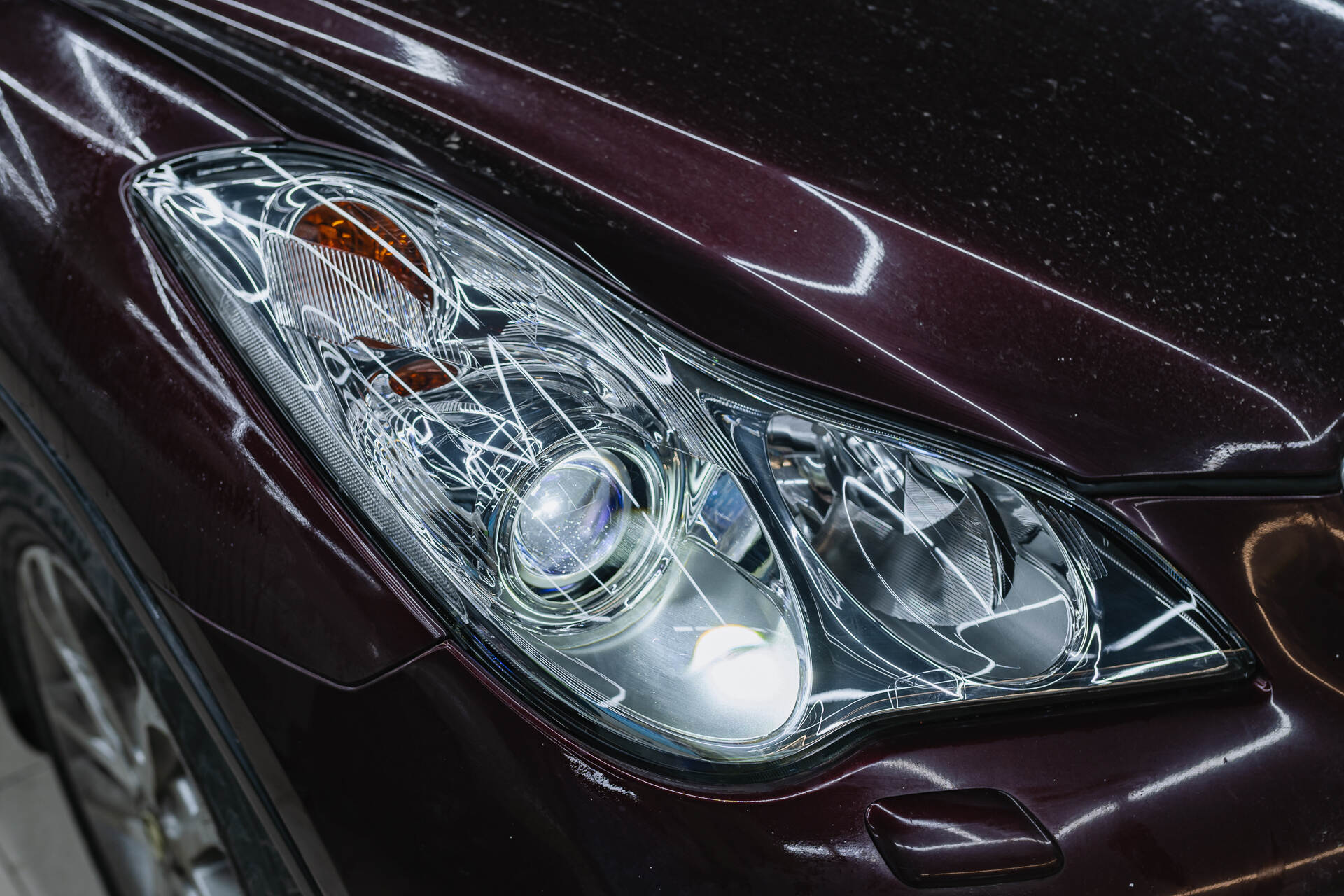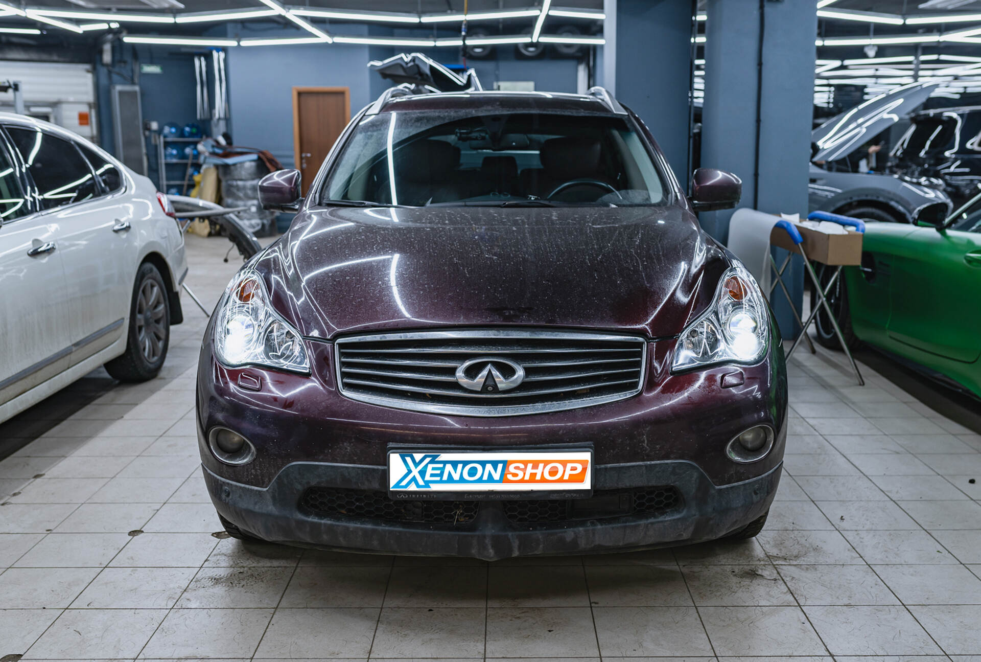 Установили новые биксеноновые линзы в фары автомобиля Infiniti EX25 (2012), а также привели стекла фар в порядок.