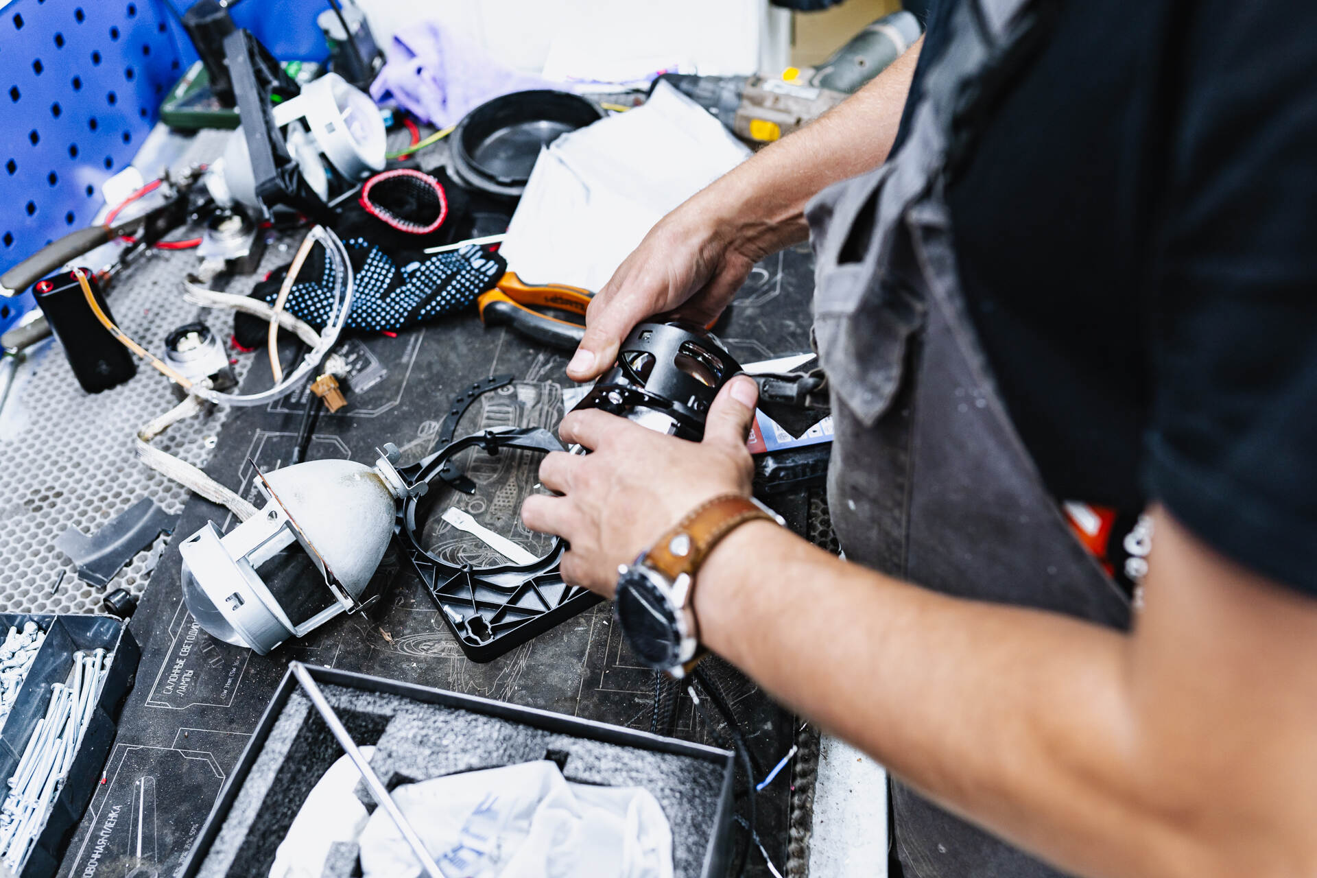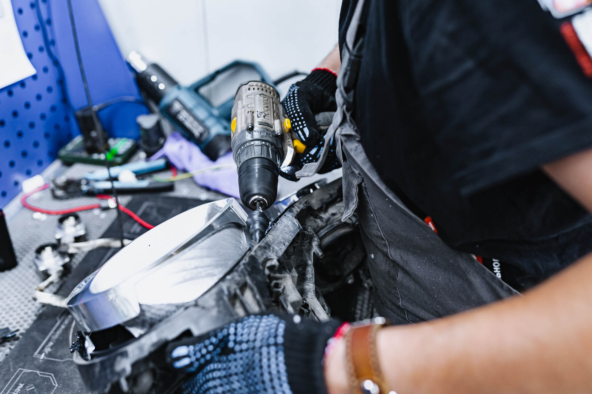 Устанавливаем новые линзы в фары. Бронируем фары и собираем автомобиль.Процесс замены линз на Мерседес 211 занимает приблизительно сутки. Почему приблизительно? Сроки выполнения зависят от текущей загрузки нашей мастерской, поэтому в некоторых случаях сдача автомобиля может быть перенесена — эти моменты мы всегда обсуждаем индивидуально с каждым клиентом. Работы начинаются с демонтажа передней части автомобиля: снимаем бампер и извлекаем обе фары, которые затем помещаются в промышленную печь, где герметик, удерживающий стекла фар на их основании, плавится, позволяя разобрать фары. После разборки из фар извлекается штатная ксеноновая оптика, а на ее место устанавливаются светодиодные линзы MTF-Light MaxBeam 2.0, которые фиксируются с помощью специальных переходных рамок без необходимости серьёзной доработки посадочных мест.