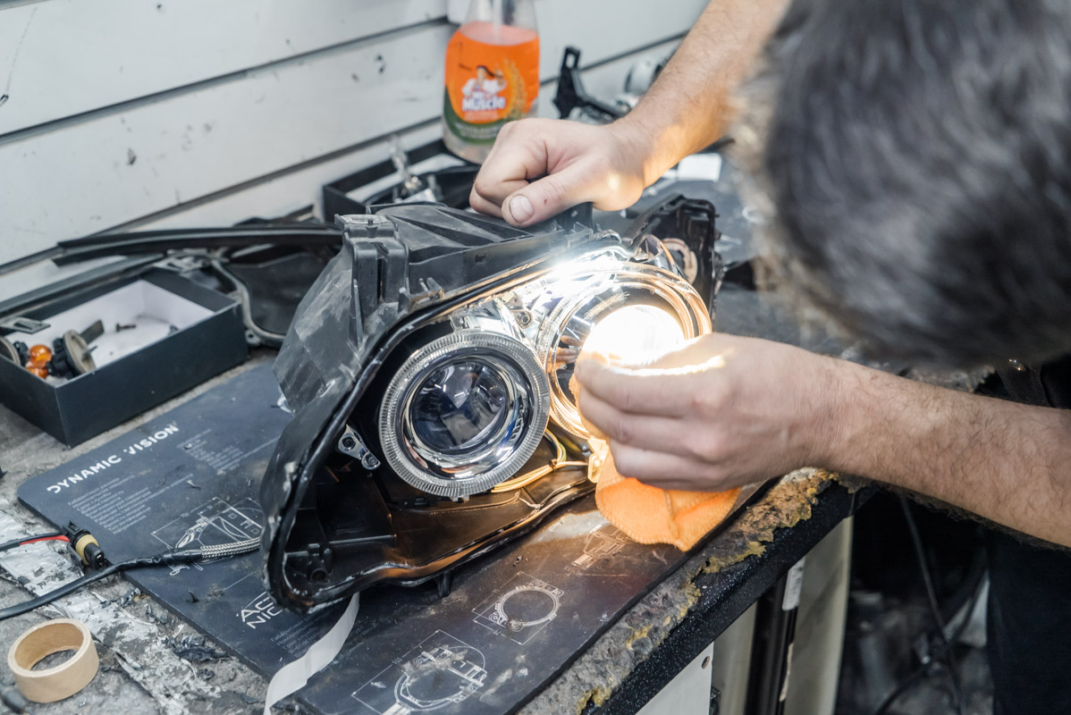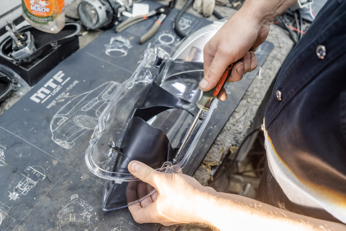Демонтаж фар с автомобиля. Разбираем фары и удаляем старые линзы.Опираясь на более чем десятилетний опыт в сфере автосвета, мы создали биксеноновые линзы XS-Light 3R Premium, идеально отвечающие запросам водителей. В отличие от штатных композитных модулей, наши линзы полностью выполнены из металла, что исключает появление нагара и гарантирует стабильность светового потока на долгие годы. Уверенность в долговечности материала подкрепляется нашей фирменной пятилетней гарантией. Универсальный диаметр 3,0 дюйма позволяет беспрепятственно инсталлировать эти модули в оптику практически любого автомобиля. В итоге использование цельнометаллических отражателей вместо пластика становится ключевым преимуществом, обеспечивающим качественный свет без потери яркости в процессе эксплуатации. В дополнение к линзам мы установим эталонные лампы Osram Original D1S с комфортной бело-желтой температурой 4200K. Несмотря на уход бренда из России, наша компания наладила прямые поставки оригинальной продукции через параллельный импорт. Эти лампы идентичны тем, что ставятся на заводских конвейерах, и сопровождаются нашей четырехлетней гарантией. В итоге установка таких ламп позволяет сохранить аутентичные характеристики освещения фар головного света.