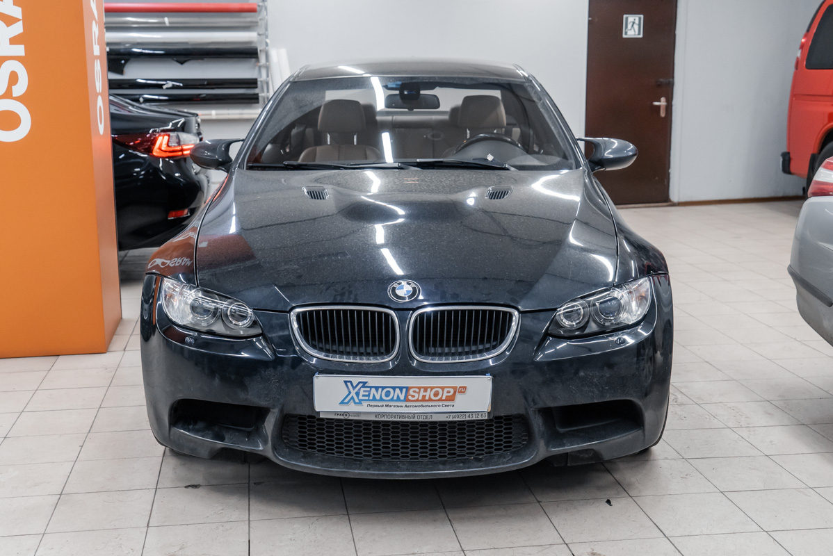 Итоговая светотеневая граница, свет и вид фар.Завершив монтаж модулей XS-Light 3R Premium в фары, мы устанавливаем новые стекла на свежий герметик и собираем автомобиль. Финальный этап включает точную настройку оптики по прибору для формирования безупречной светотеневой границы. Как демонстрируют итоговые снимки, фары BMW M3 E92 (2011) обрели мощное свечение, которое не только гарантирует безопасность на ночных дорогах, но и придает транспортному средству обновленный, строгий вид. Эффектный контраст яркого света с черным кузовом подчеркивает премиальный статус машины, возвращая ей эстетику нового авто. В результате владелец получает идеальный баланс между визуальной привлекательностью и максимальным комфортом в пути.