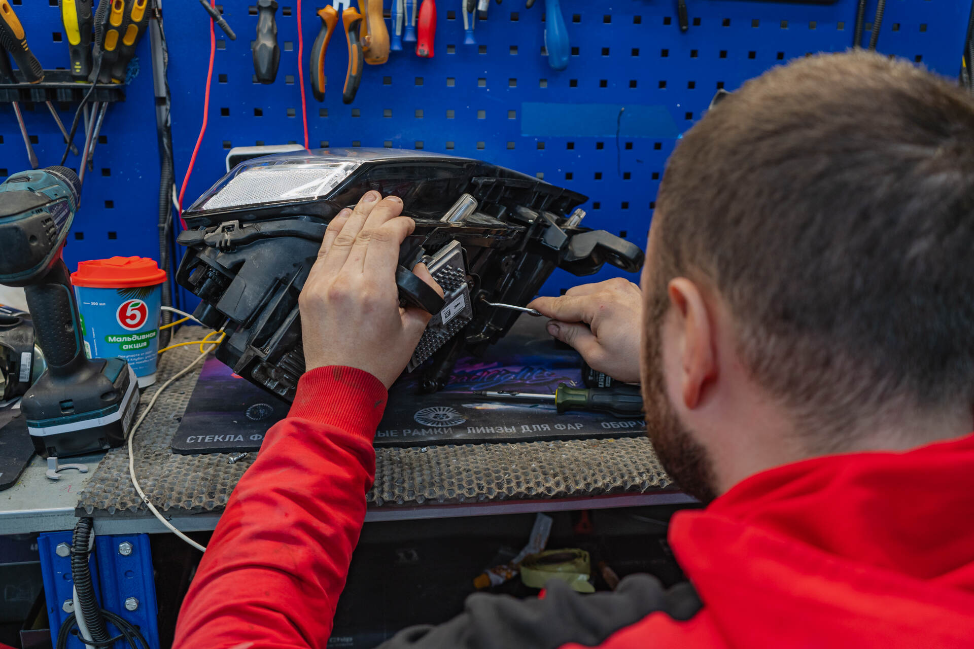 - Замена линз в фарах на твёрдом герметике 17500 ₽