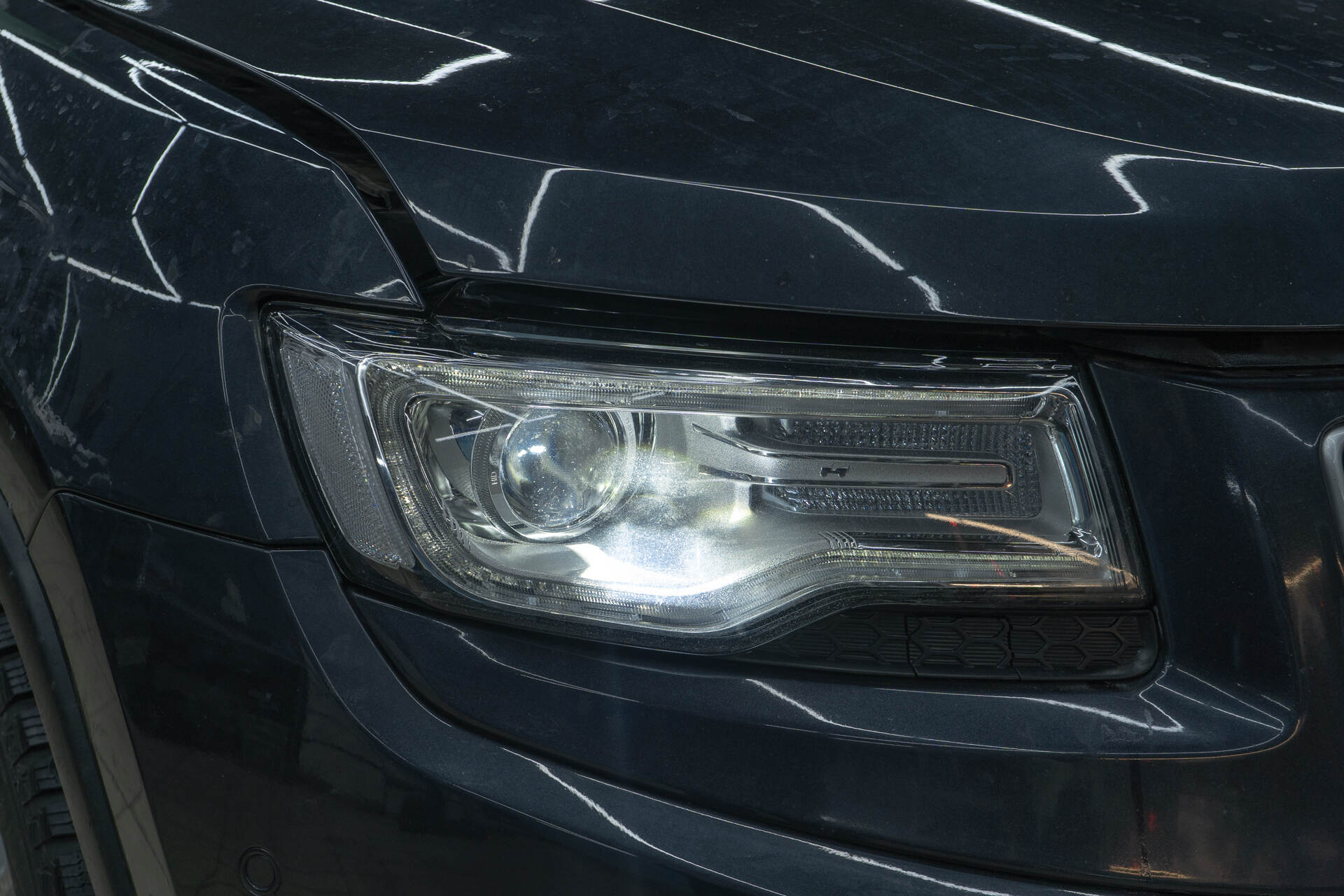 Итоговая светотеневая граница и вид авто после работы.Завершив установку светодиодных модулей Vision Tri-led Ultimate Series, мы собрали фары Jeep Grand Cherokee WK2 на свежий температурный герметик и вернули их на автомобиль. Далее оптика прошла точную настройку на специальном стенде для формирования безупречной светотеневой границы. Обновленный головной свет, результаты которого зафиксированы на итоговых фото, демонстрирует идеальную белизну без посторонних оттенков, а также плотную и равномерную заливку. Благодаря широкому световому пучку и отсутствию паразитных засветок новые линзы гарантируют водителю безопасность и комфорт в темноте, исключая при этом ослепление встречного трафика.