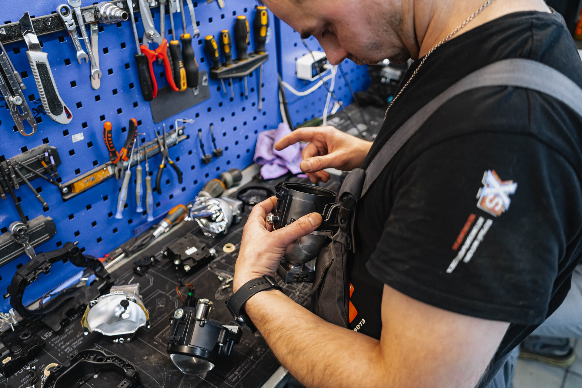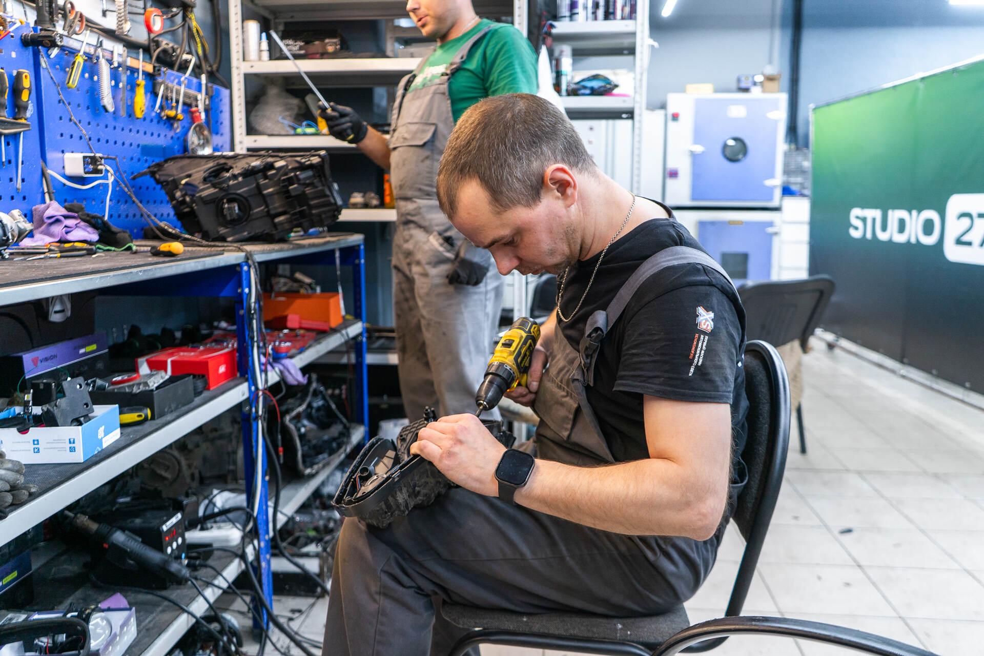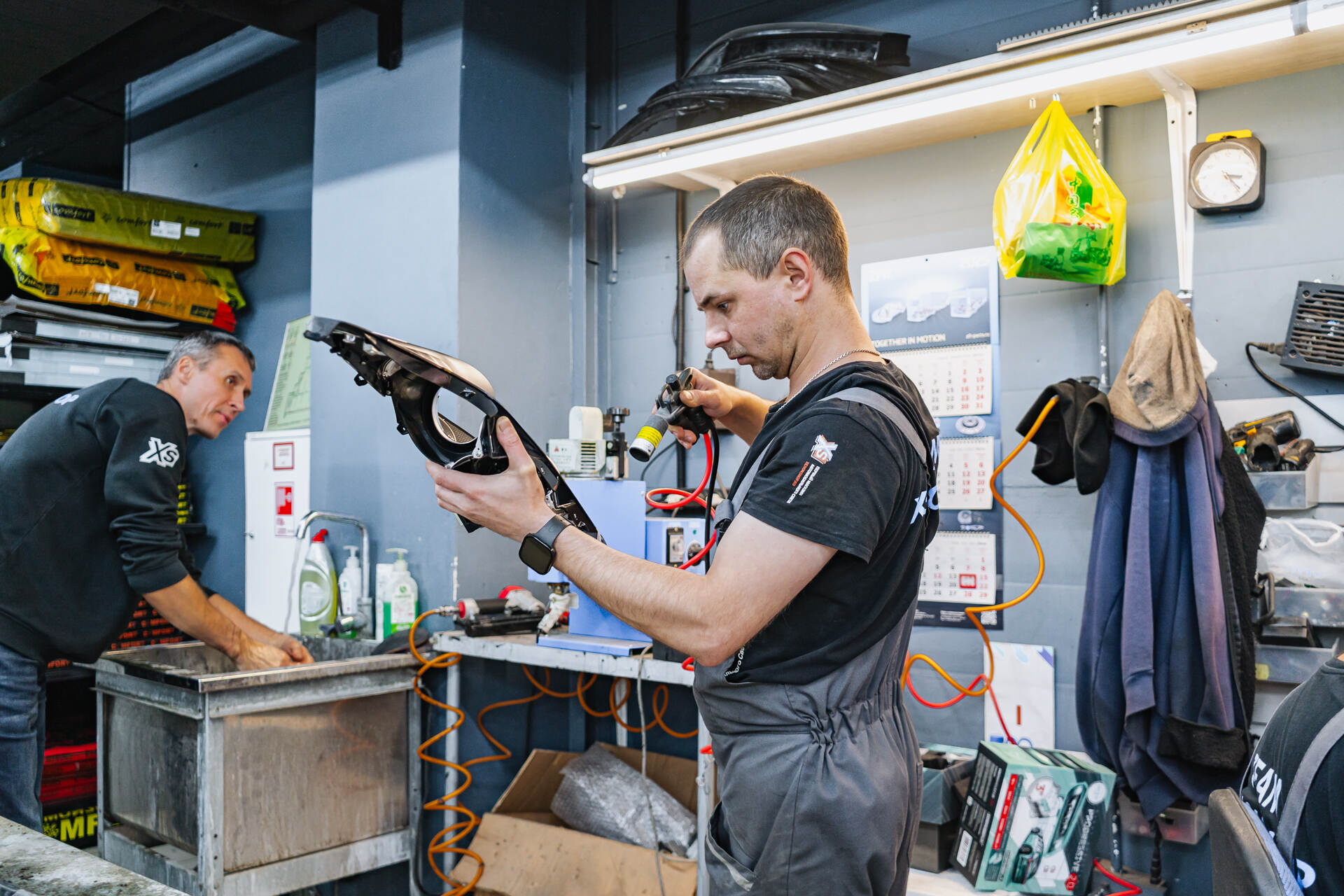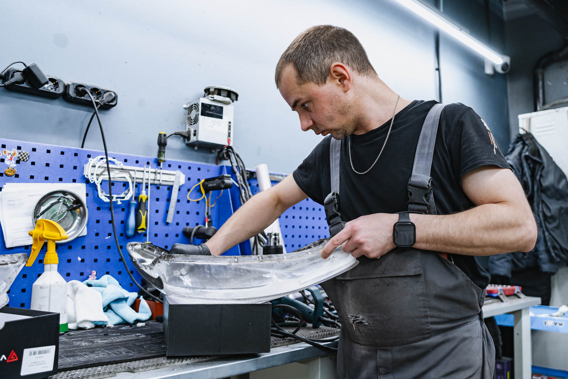 Регулировка нового автосвета по прибору.Дополнительно мы привели в идеальное состояние и стекла фар: изнутри очистили их от загрязнений щелочным составом, а снаружи отполировали до зеркального блеска абразивными пастами, которые эффективно устраняют помутнения и мелкие повреждения поверхностей. Завершающий этап работ включает герметизацию фар с новыми линзами бутиловым герметиком, их установку на автомобиль и точную регулировку оптики по прибору, тем самым мы добиваемся идеально ровной светотеневой границы. На этом работа завершена — можно оценивать результат.