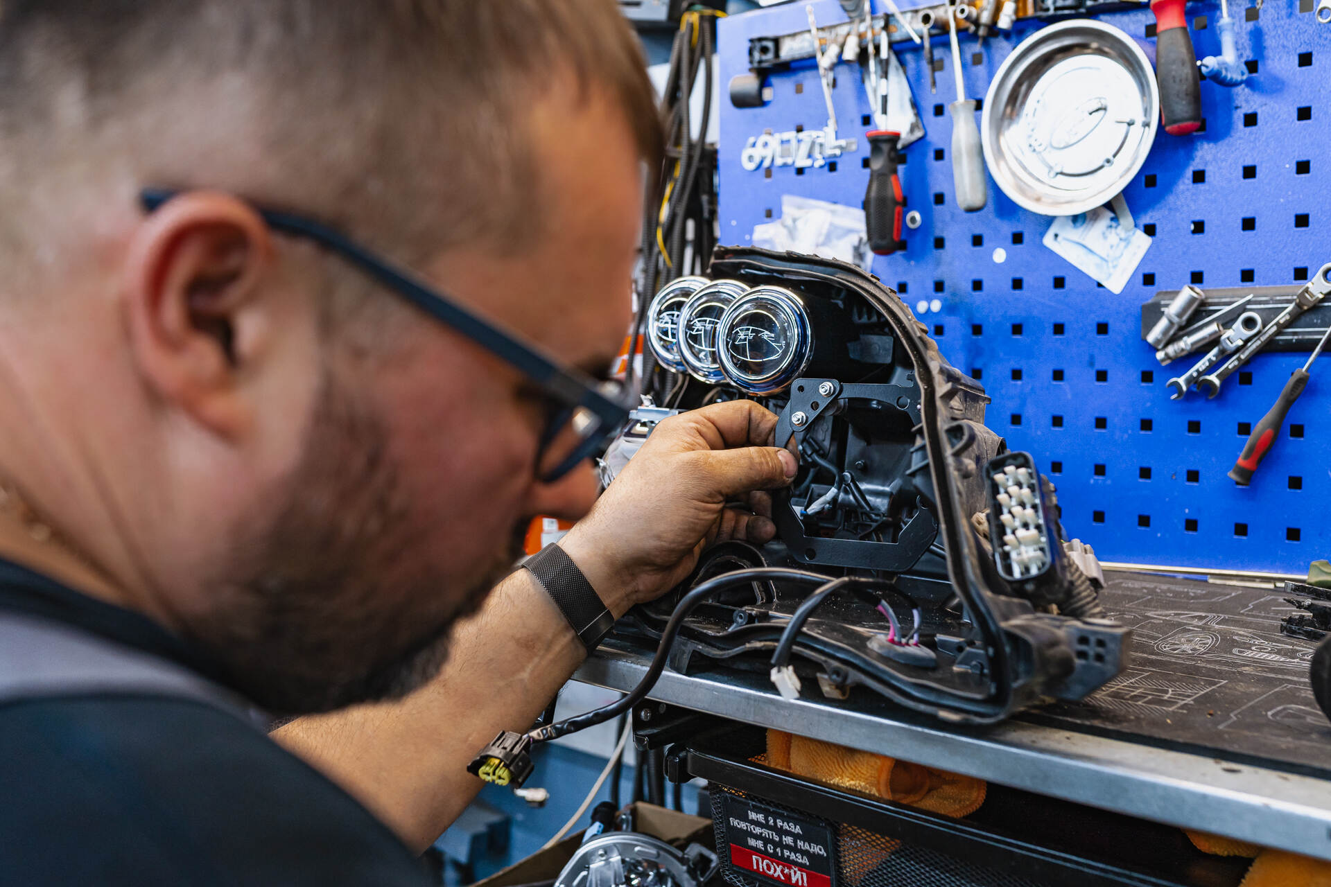 Установка новых линз в фары и их примерка на автомобиле до герметизации. Регулировка света и полировка стекол фар.После установки новых линз фары герметизируются с использованием бутилового герметика. Как только он надёжно схватывается, мы приступаем к окончательной сборке Lexus LS. Завершающим этапом является регулировка обновлённой оптики с помощью высокоточного регулировочного прибора на специальном стенде, что позволяет добиться идеального положения светодиодных линз Vision Tri-led Ultimate Series 4300K и правильного распределения их света по дорожному полотну. Дополнительно, как мы уже отмечали, мы выполнили полировку стёкол фар, вернув им кристальную прозрачность, благодаря чему световой поток теперь достигает максимальной эффективности.