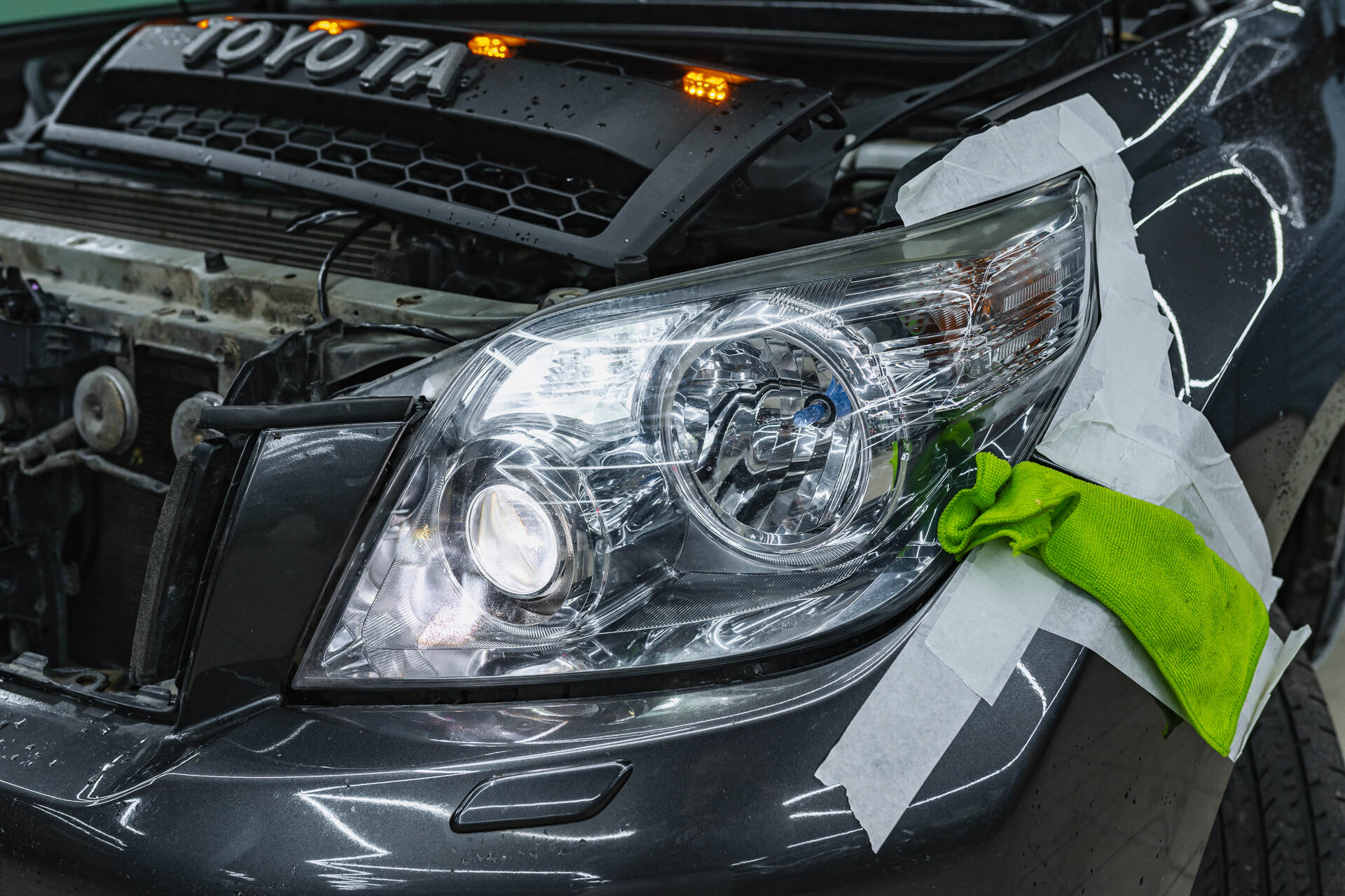 Герметизируем фары.После установки новых линз фары герметизируются бутиловым (температурным) герметиком, и после его полимеризации автомобиль полностью собирается. На финальном этапе мы выполняем точную регулировку оптики по прибору (фараскоп), достигая безупречно ровной светотеневой границы. Завершающей процедурой становится внешняя полировка стекол до идеальной прозрачности, что обеспечивает беспрепятственное прохождение светового потока от линз Vision Avantgarde без искажений и потерь, что позволяет раскрыть максимальный потенциал яркости обновленной оптики.