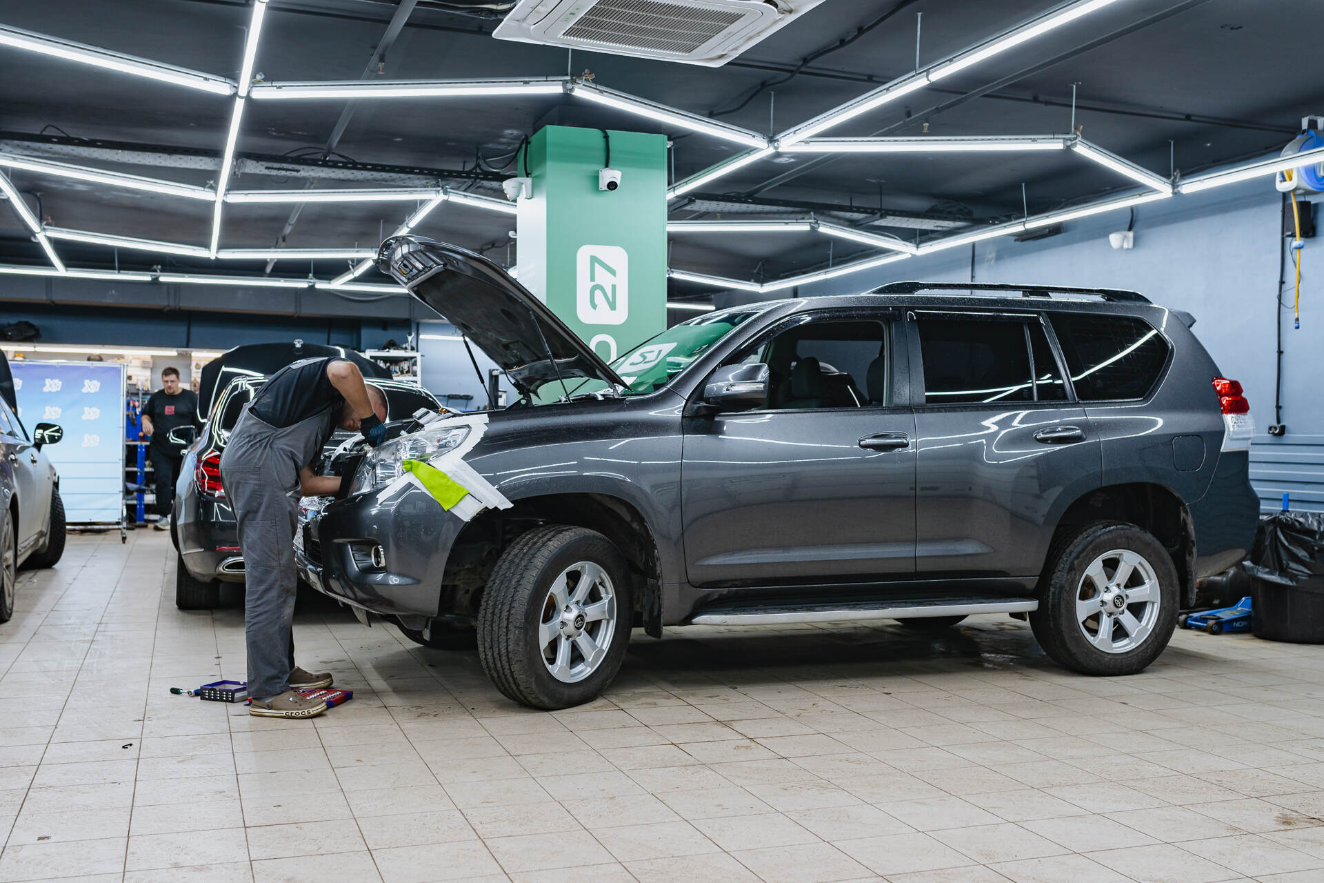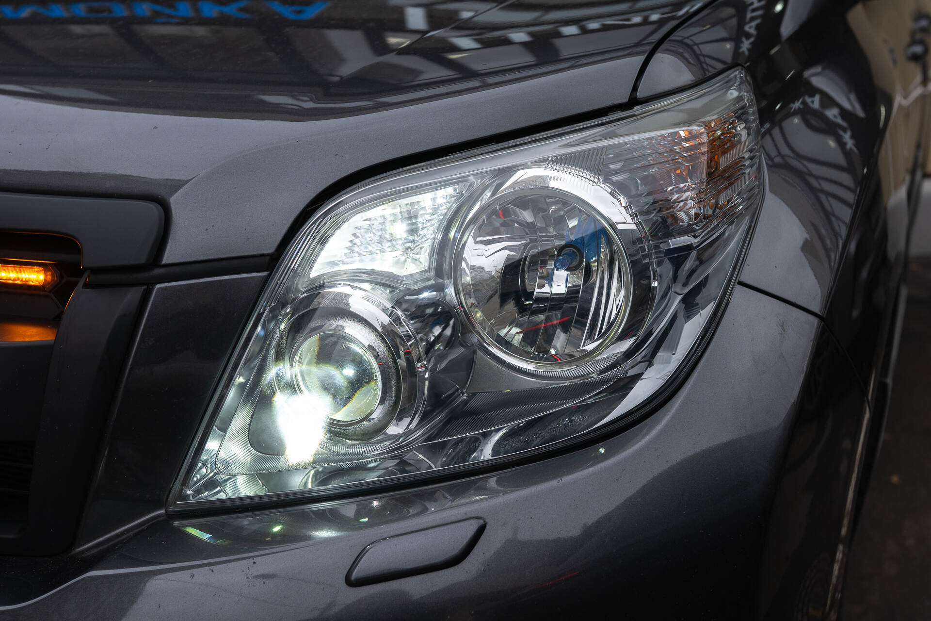 Исходный свет до замены линз и демонтаж фар с автомобиля.В рамках данного проекта мы заменим штатные ксеноновые линзы в фарах Toyota Land Cruiser Prado 150 (2010) на мощные светодиодные модули Vision Avantgarde, создающие интенсивный световой поток температурой 4800K. В момент обращения головной свет был довольно слабым, что, само собой, вызывало у водителя ощутимый дискомфорт во время ночных поездок. В дальнейшем интенсивность света продолжала бы только снижаться вплоть до полного истощения — это и есть естественный процесс выгорания оптики, который неизбежен для любых штатных линз. Важно осознавать, что линзы являются расходным материалом, поэтому рано или поздно, в зависимости от интенсивности эксплуатации транспортного средства, их потребуется менять.