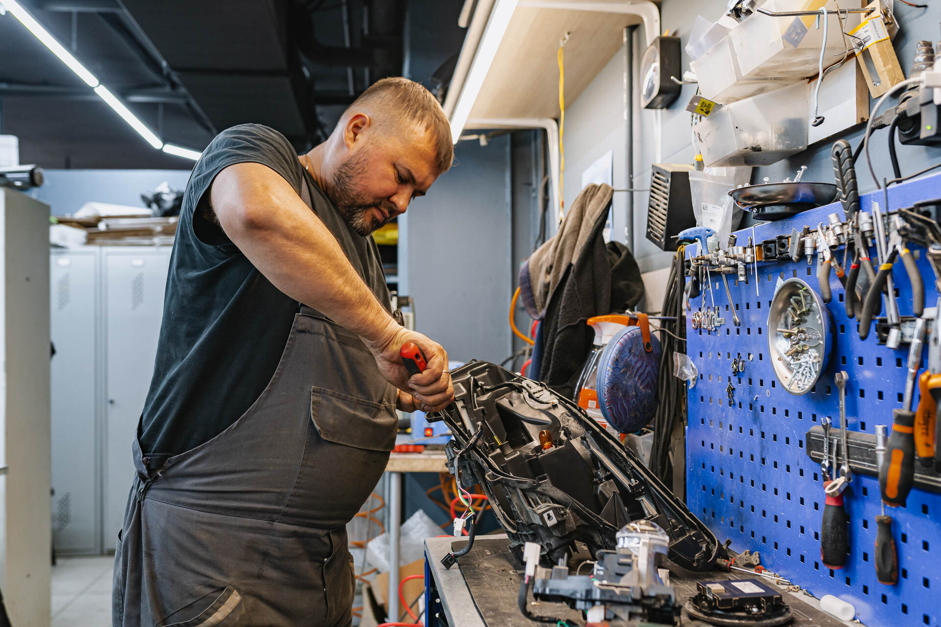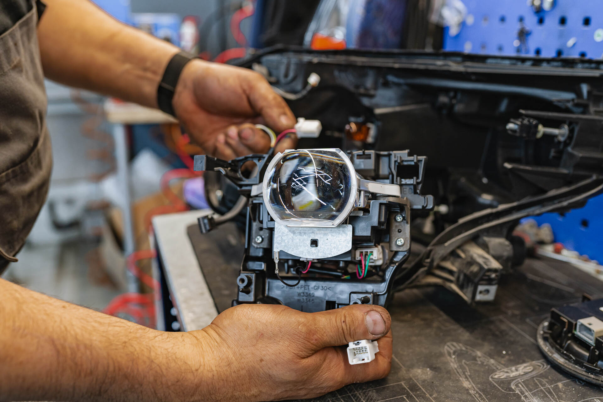 Собираем автомобиль после замены линз в фарах.