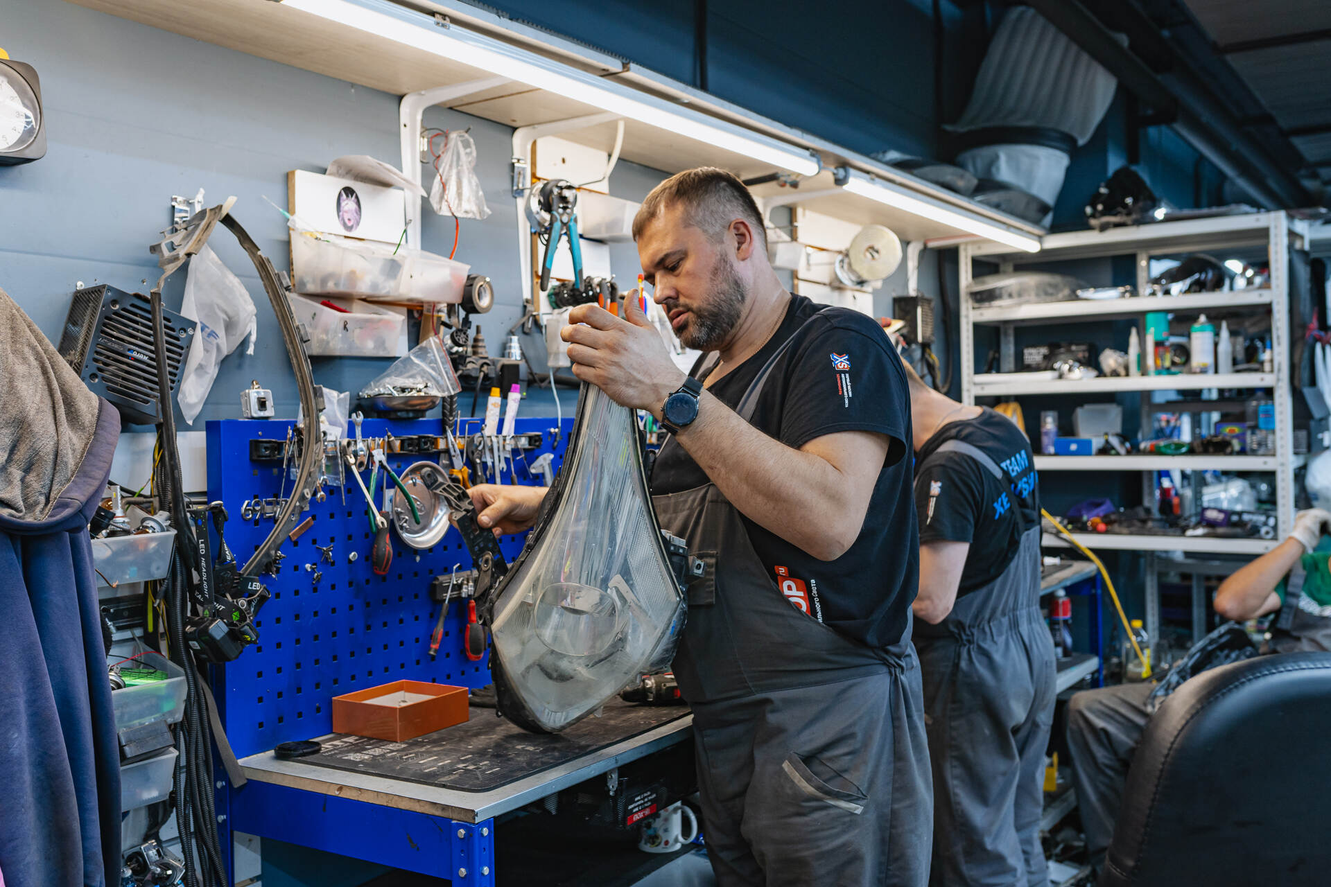 Разбор фар после демонтажа с автомобиля, а также удаляем старый герметик.Мы неоднократно устанавливали светодиодные линзы Vision TRI-LED Ultimate Series Soft 4800K и полностью уверены в их надежности и долговечности. Главное преимущество этих модулей заключается в высокой яркости, которая не снижается с годами, позволяя владельцу забыть о проблемах со светом на длительный срок – установил и забыл! LED-модули значительно превосходят заводские линзы по мощности световой отдачи, а эффективная система активного охлаждения с вентилятором предотвращает перегрев. На все используемые материалы и качество проведенных работ мы предоставляем полноценную гарантию, обеспечивая клиенту абсолютное спокойствие при эксплуатации.