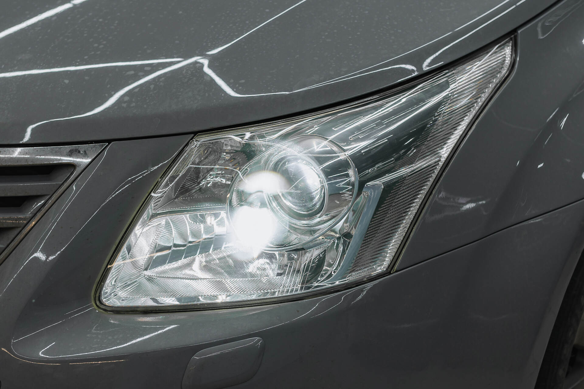 Недавно мы модернизировали головной свет автомобиля Toyota Avensis, владелец которого столкнулся с деградацией штатной оптики. Выгорание линз привело к резкому падению яркости и появлению паразитных розово-фиолетовых оттенков в световом потоке. Интенсивный нагрев газовых ламп неизбежно формирует нагар на отражателях, поэтому замена ламп даже на самые мощные аналоги не решит проблему без обновления самих модулей. В данном кейсе мы заменим сильно выгоревшие штатные линзы на современные светодиодные модули Vision TRI-LED Ultimate Series Soft 4800K, обеспечивающие идеально чисто-белый свет.