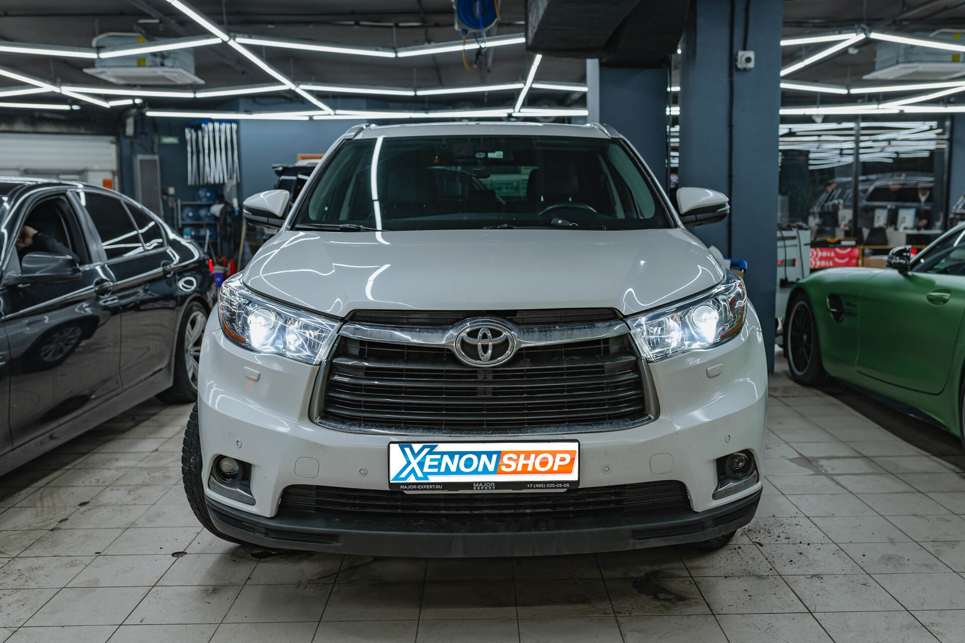 Если качество дорожного освещения от фар снизилось, мы рекомендуем своевременную модернизацию оптики, ведь от эффективности головного света напрямую зависят комфорт и безопасность в пути. Именно с такой проблемой обратился владелец автомобиля Toyota Highlander: штатный ксенон значительно выгорел, перестав обеспечивать достаточную видимость для ночных поездок. Подобная деградация света типична для заводских линз, где пластиковые отражатели под воздействием высоких температур покрываются нагаром и теряют способность рассеивать свет от ламп. Обычно критическое падение яркости проявляется к 70–100 тысячам километров пробега, превращая вождение в темное время суток в серьезное испытание.