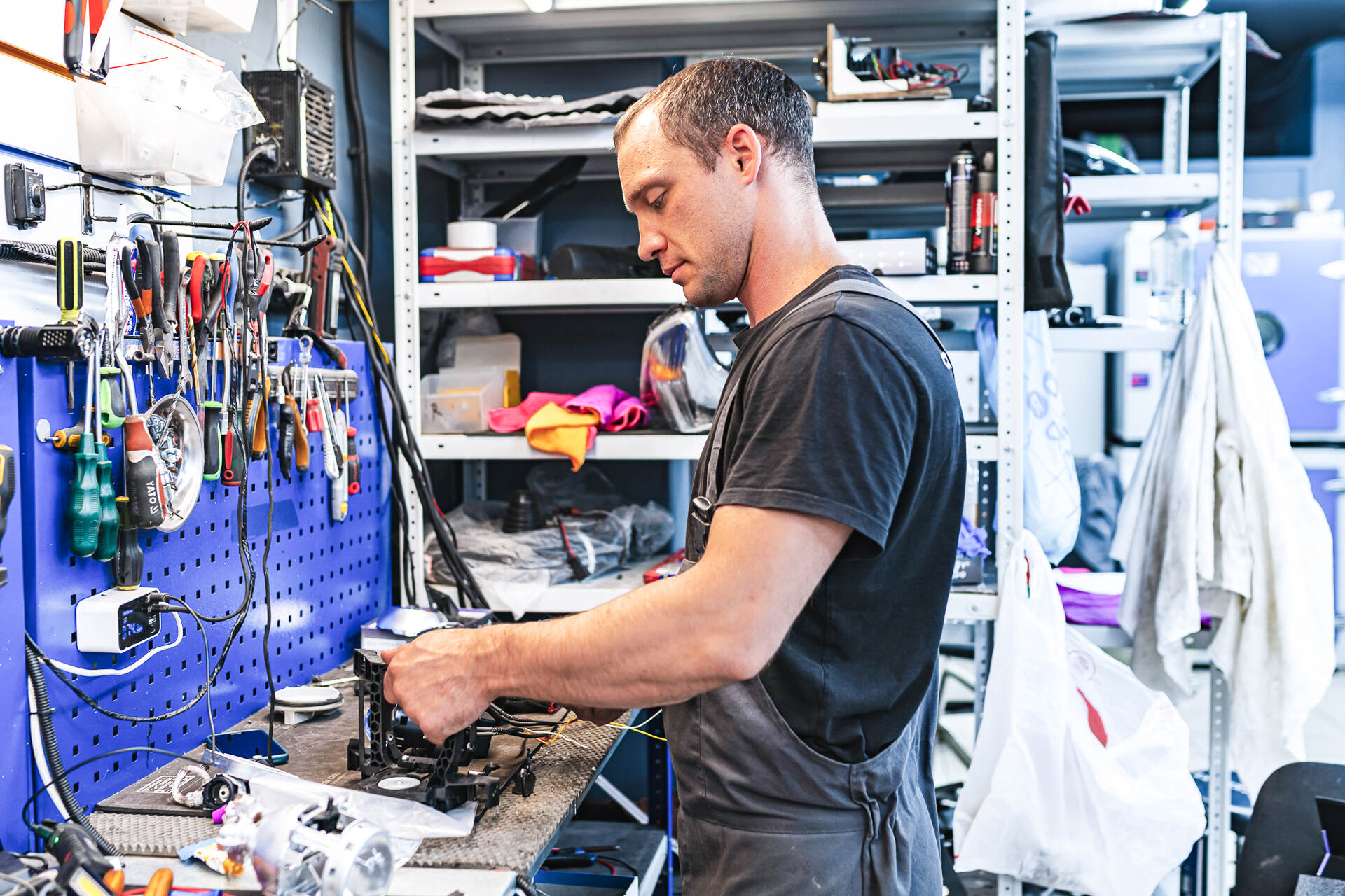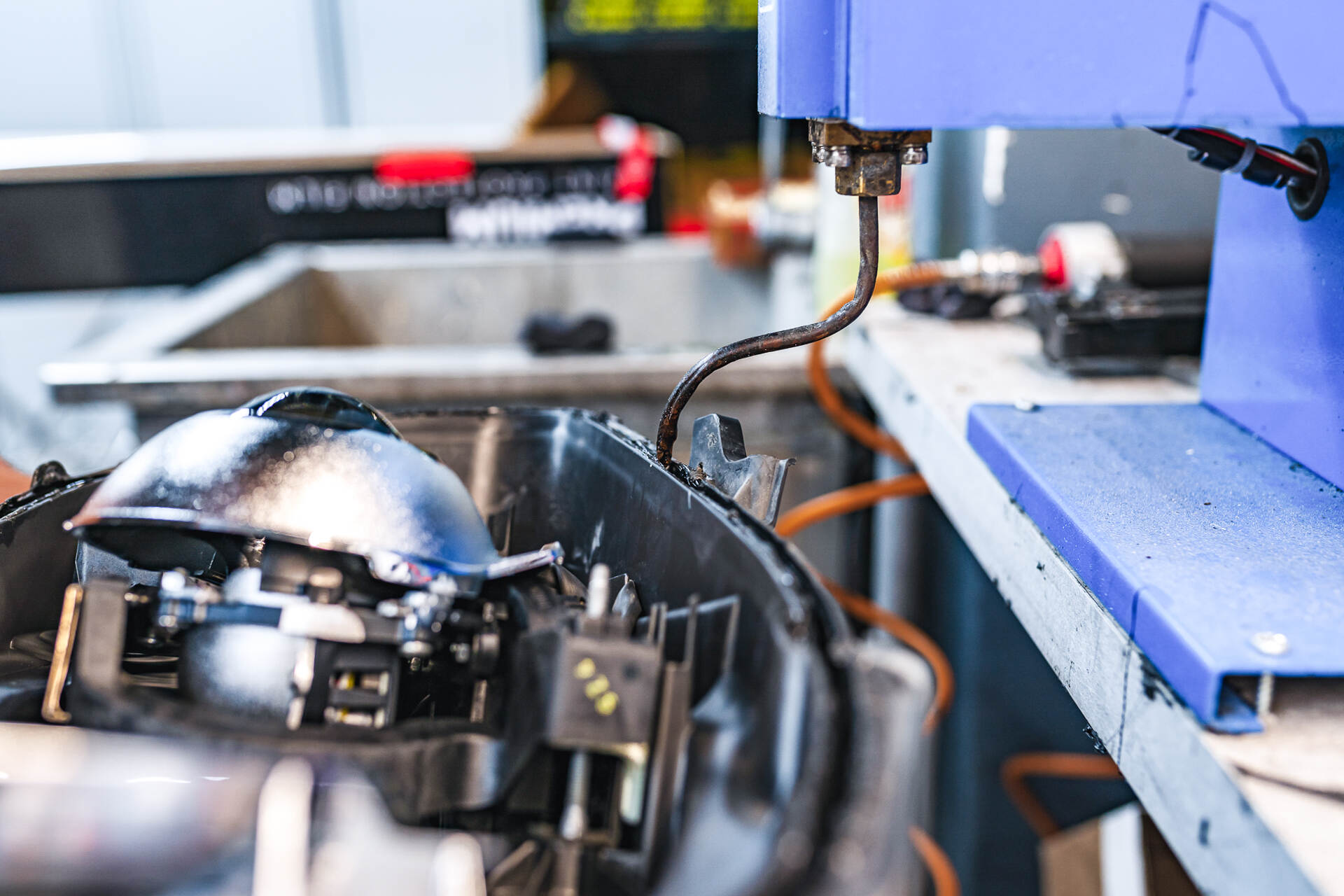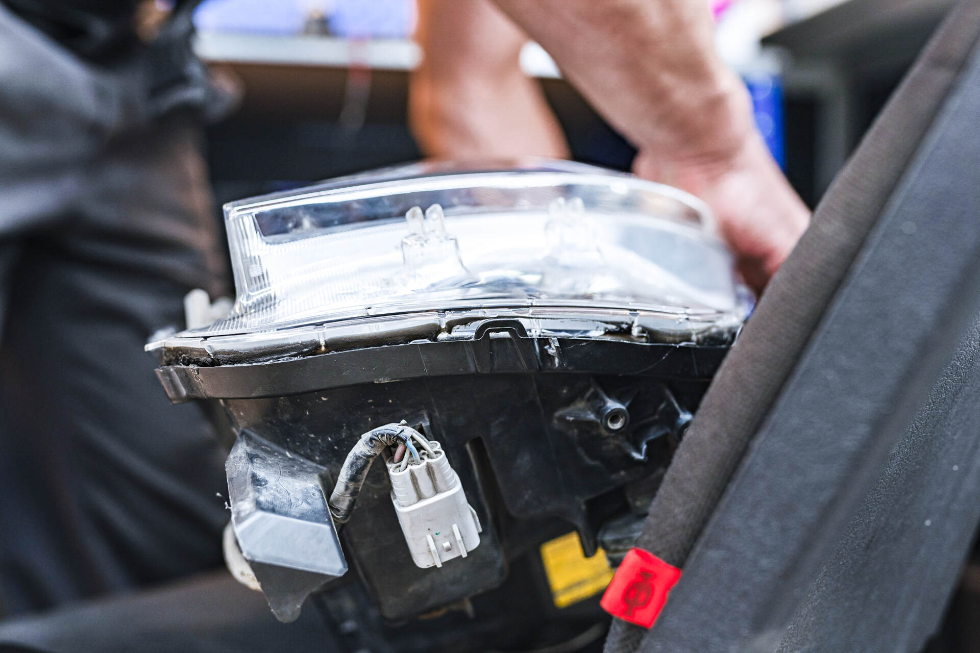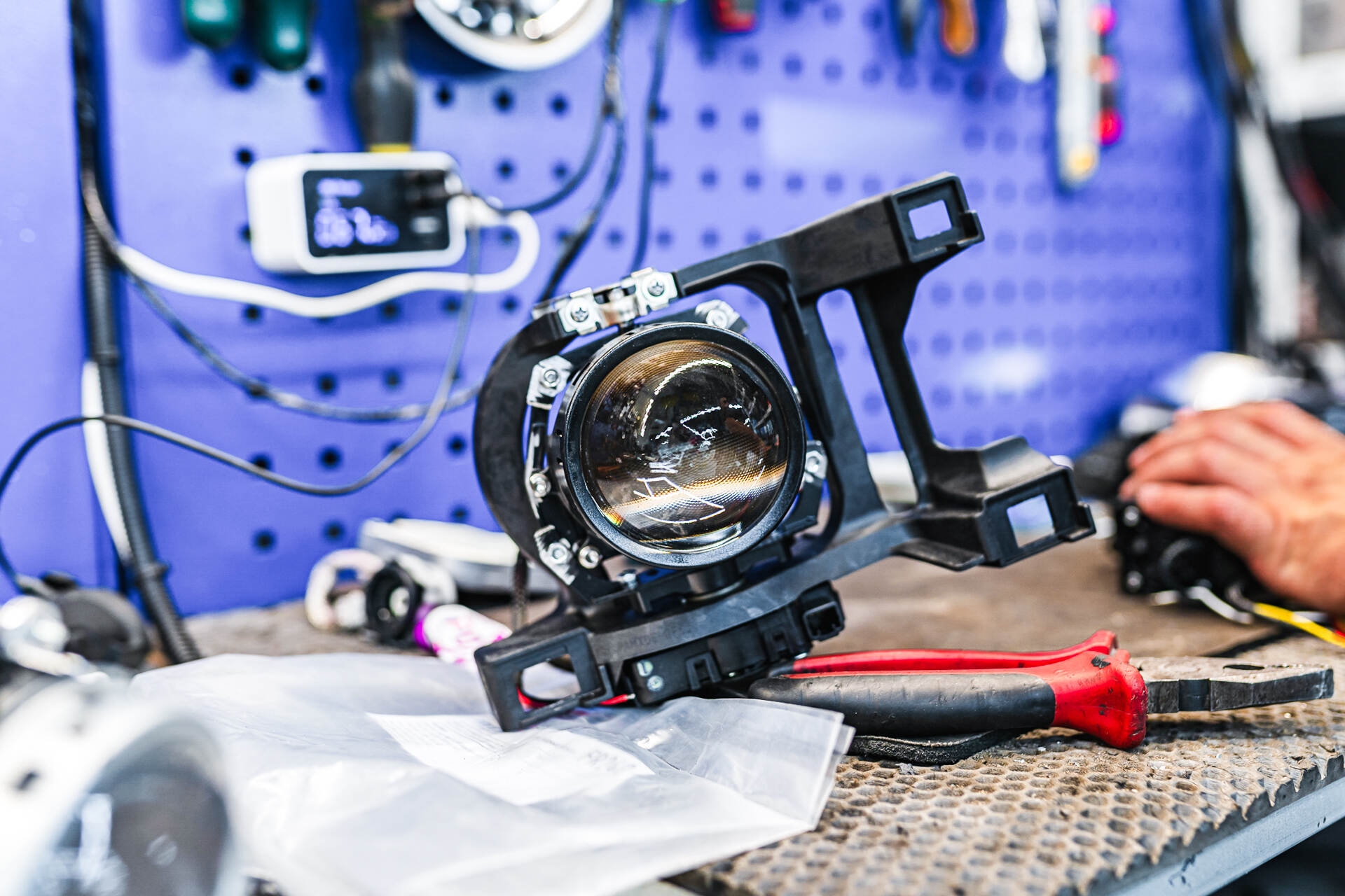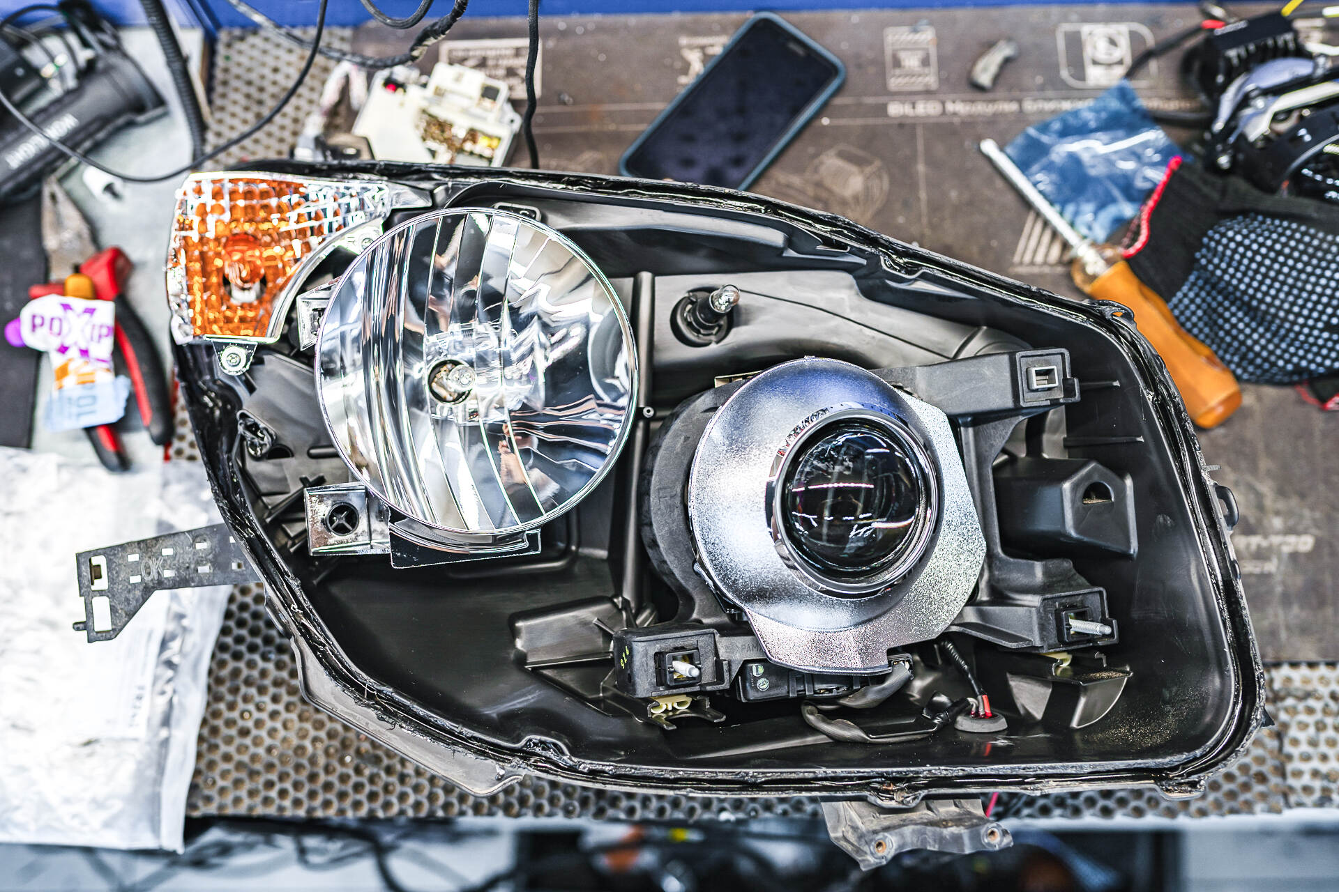 Демонтируем и разбираем фары. Установка новых линз в фары.Замена линз на Тойота Прадо 150 требует полного рабочего дня: автомобиль поступает в мастерскую утром, а к вечеру возвращается владельцу с обновленной системой головного освещения. В редких случаях сроки выполнения могут незначительно корректироваться, однако наши специалисты всегда оперативно информируют клиентов о ходе работ. Работа по замене линз начинается с разбора передней части автомобиля: снимается бампер и извлекаются обе фары, которые затем помещаются в промышленную печь для разогрева герметика и последующей разгерметизации. После этого производится аккуратная разборка фар, извлечение отработавших ксеноновых линз и установка светодиодных модулей Vision TRI-LED Ultimate Series Soft 4800K с применением специальных переходных рамок, обеспечивающих надёжную посадку новых линз в фарах.
