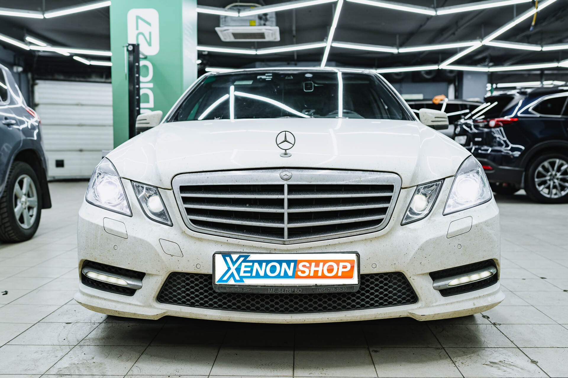 Итоговая светотеневая граница ближнего и дальнего света.Подведем итоги проведенной работы: новые отражатели в штатных ксеноновых линзах Mercedes-Benz E W212 продемонстрировали превосходный результат — светотеневая граница стала широкой, насыщенной и интенсивной как для ближнего, так и дальнего света. Этот эффект был бы невозможен без новых ксеноновых ламп Osram Original D1S. Обновленный головной свет обеспечивает достаточную освещенность для безопасных ночных поездок, а его яркий световой поток эффектно смотрится на фоне светлого кузова, подчеркивая строгий и современный облик автомобиля.