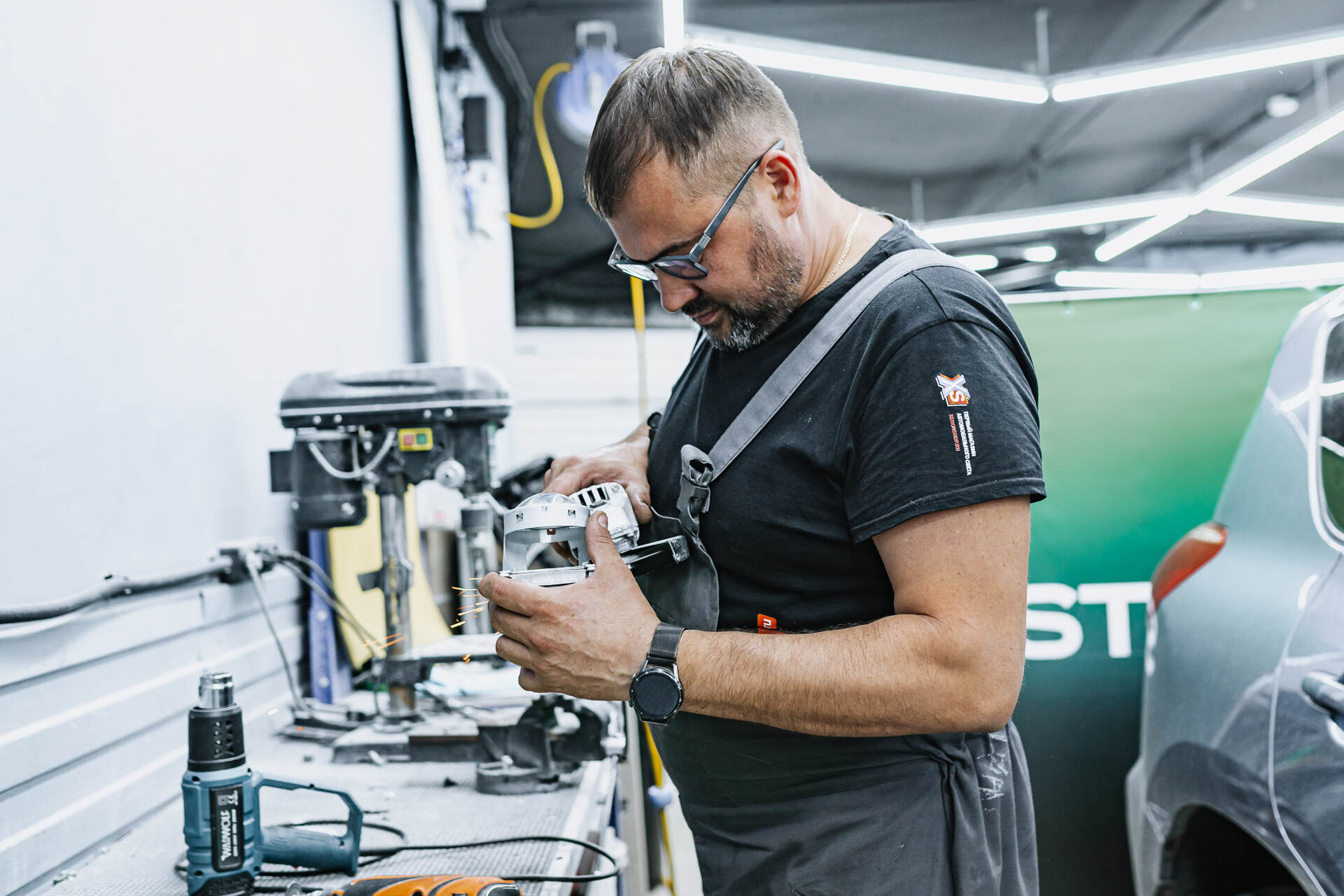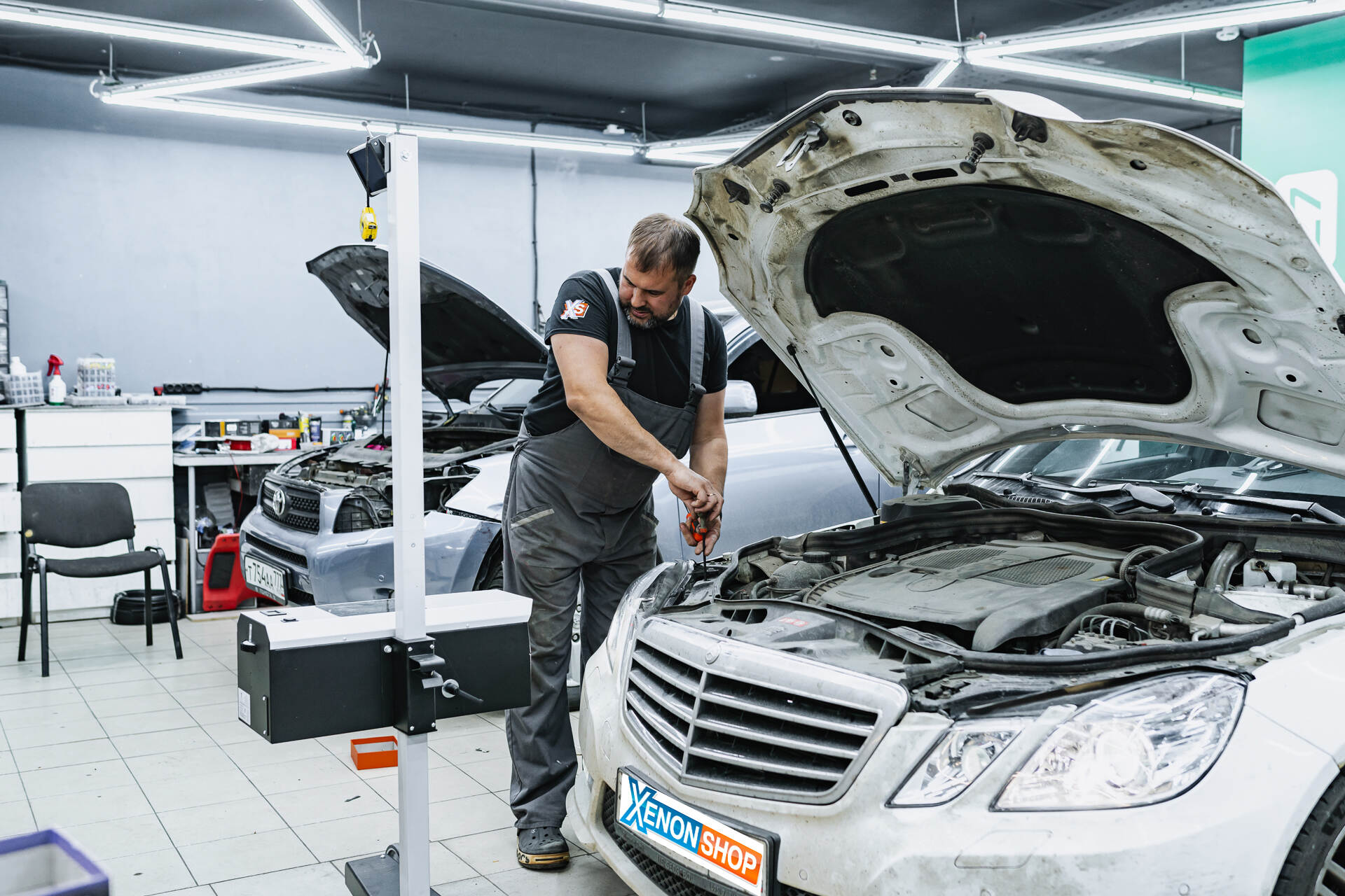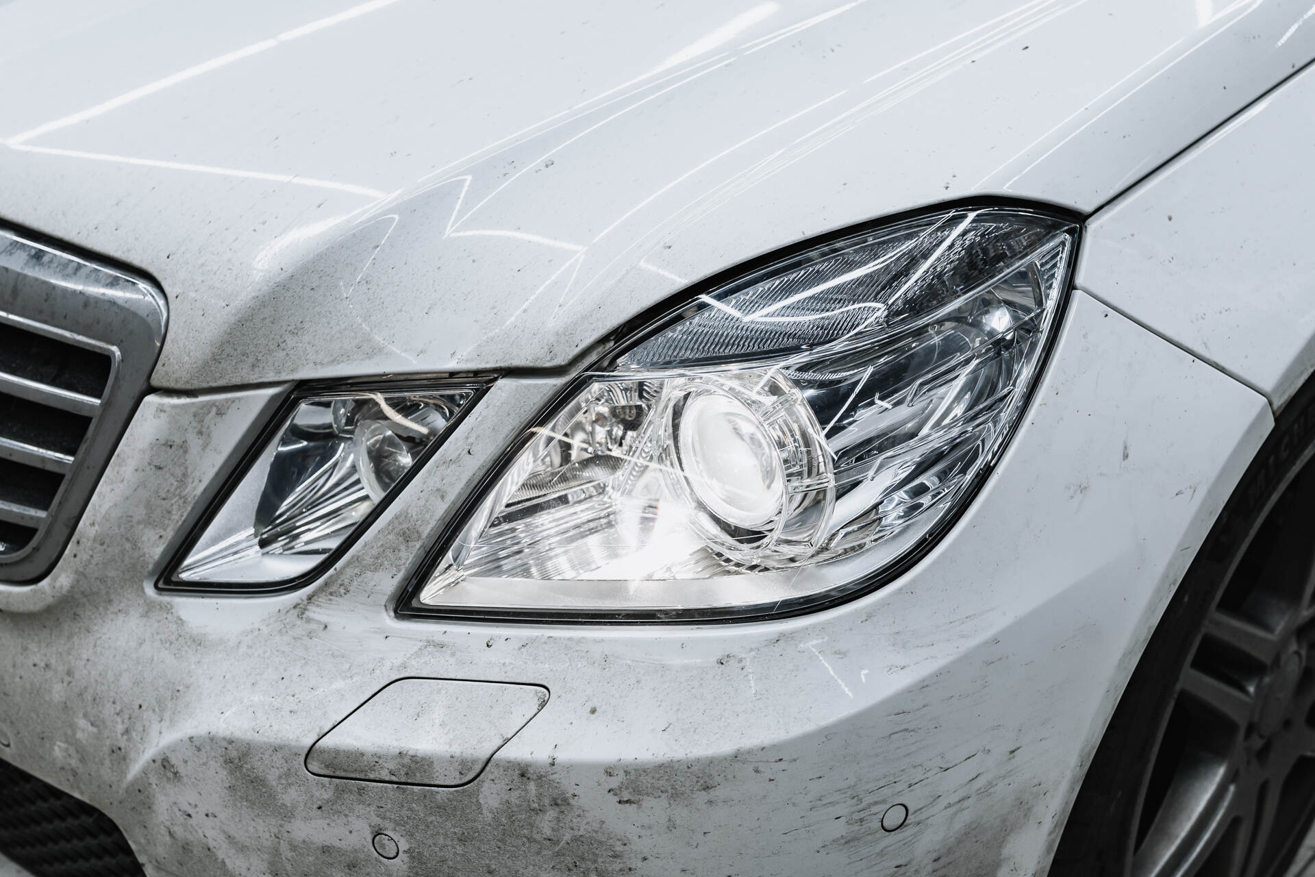 Мы работаем с автосветом каждый день: есть небольшие работы, есть масштабные – иногда это ограничивается простой заменой ламп, а в других случаях требует комплексного переоснащения системы освещения. Именно о таком проекте пойдет речь в данном кейсе с Mercedes-Benz E W212: владелец автомобиля столкнулся с проблемой выгоревшей оптики и хотел найти максимально комфортное решение. Мы руководствуемся простым принципом: свет должен быть одновременно эффективным и эстетичным, поэтому с удовольствием взялись за реализацию нестандартного подхода. Вопреки ожиданиям, мы не станем менять линзы, а произведем замену отражателей в штатных линзовых модулях, что позволит сохранить функцию адаптивного головного света. Безусловно, установка новых линз в адаптивные фары технически возможна, и мы имеем большой опыт таких работ, однако некоторые клиенты принципиально не желают отказываться от системы адаптивной регулировки света.