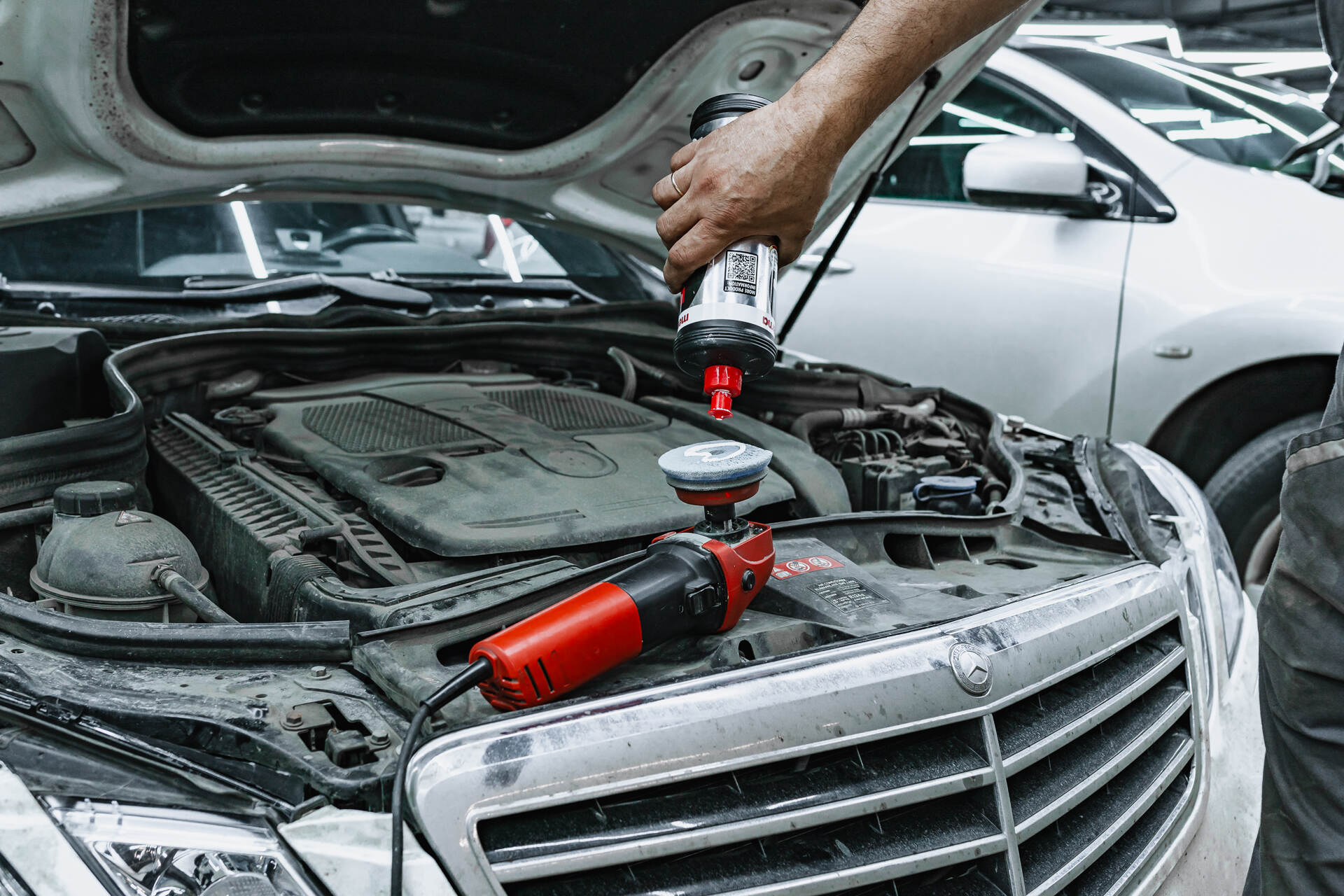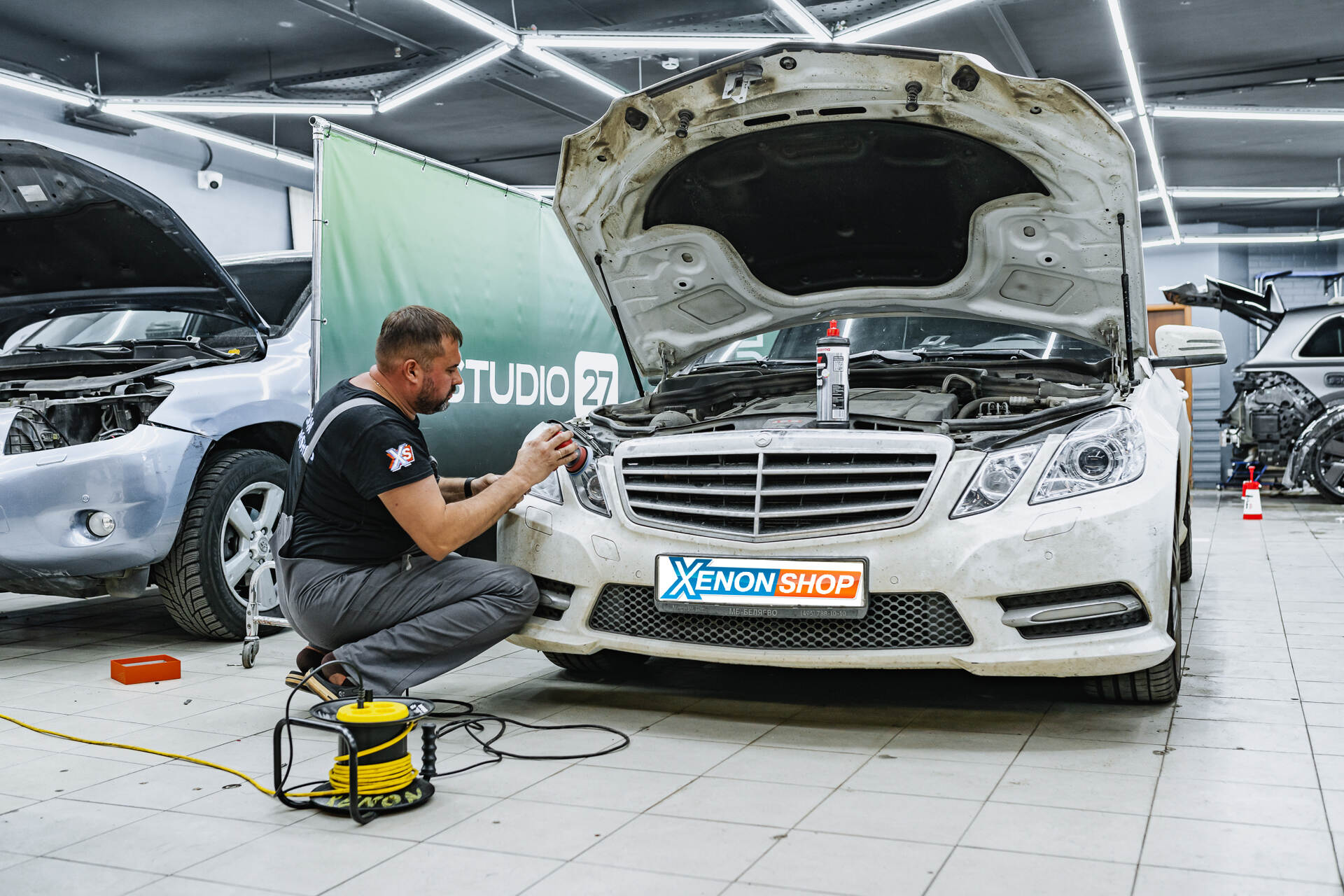 Герметизируем фары и собираем автомобиль. Полируем стекла фар и регулируем свет.Затем мы выполняем сборку фар и после полимеризации нового герметика устанавливаем их обратно на свое место. На завершающем этапе мы регулируем обновленную оптику Mercedes-Benz E W212 с новыми отражателями и полируем внешние стороны стекол фар до идеального состояния. Регулировка света выполняется с помощью специального прибора для достижения безупречно ровной светотеневой границы, а для полировки используются абразивные составы 3M, эффективно устраняющие мелкие царапины и поверхностные помутнения.