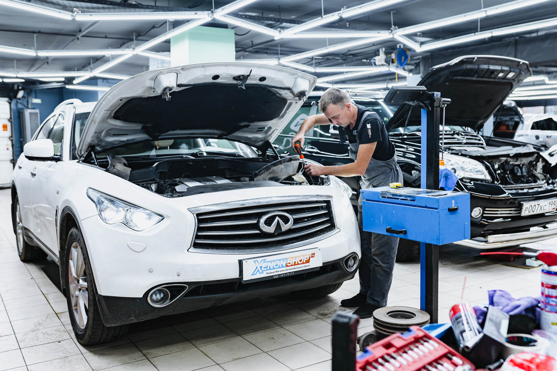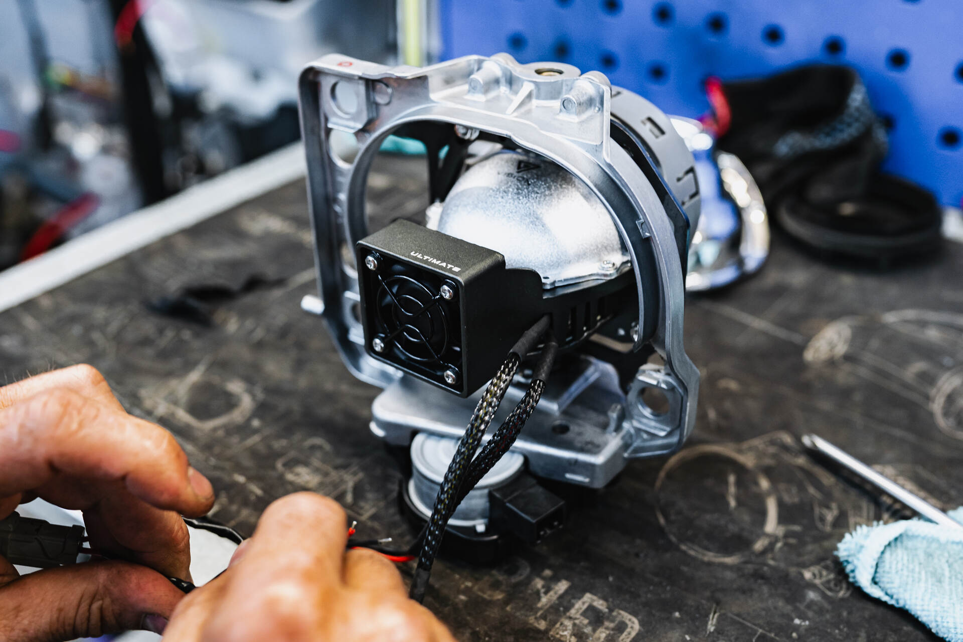 Демонтаж и разбор фар.Вернёмся к рассмотрению конкретного кейса по замене линз Infiniti FX34 (2012), где мы заменим штатные ксеноновые модули на современные светодиодные линзы Vision TRI-LED Ultimate Series Soft с температурой свечения 4800K, генерирующие приятный глазу белый свет. Благодаря технологическому прогрессу современные светодиодные решения демонстрируют превосходные светотехнические характеристики, ни в чем не уступая, а зачастую и превосходя традиционный ксеноновый автосвет – это подтверждается практикой — качество светового потока современных LED-модулей действительно соответствует высочайшим стандартам.