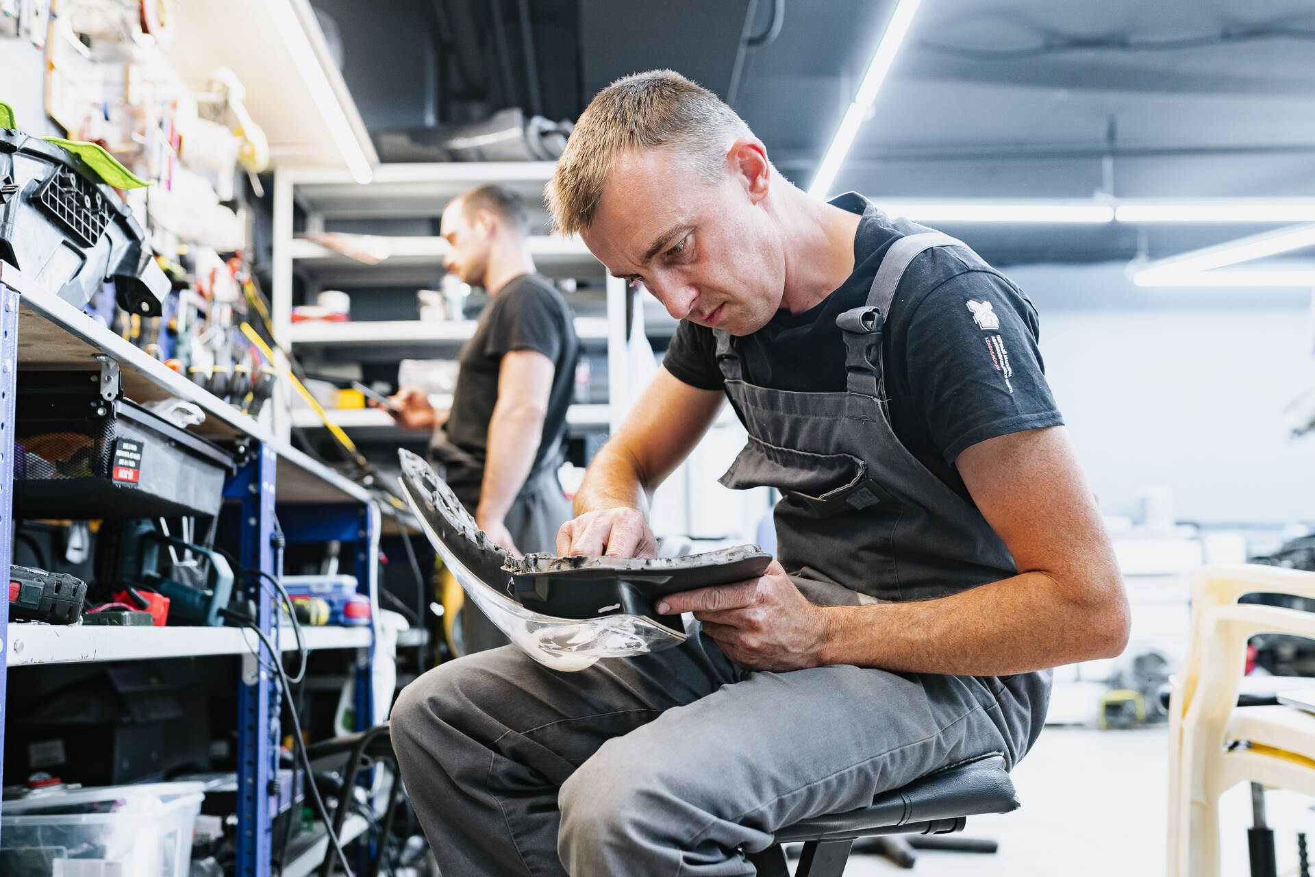Установка новых светодиодных линз в фары.Замена линз на Инфинити ФХ34 занимает полный рабочий день, а работы начинаются с демонтажа переднего бампера и извлечения фар, которые затем помещаются в промышленную печь, где герметик, удерживающий стекла фар на их основании, плавится, позволяя разобрать фары. Разобрав фары, извлекаем из них старые выгоревшие ксеноновые линзы. Монтаж светодиодных линз Vision TRI-LED Ultimate Series Soft 4800K осуществляется с помощью переходных рамок, что исключает необходимость кардинальной доработки штатных посадочных мест. При первичной диагностике автомобиля было отмечено значительное помутнение стекол фар, поэтому мы выполним их внутреннюю очистку щелочным составом с последующей внешней полировкой для восстановления прозрачности и блеска.