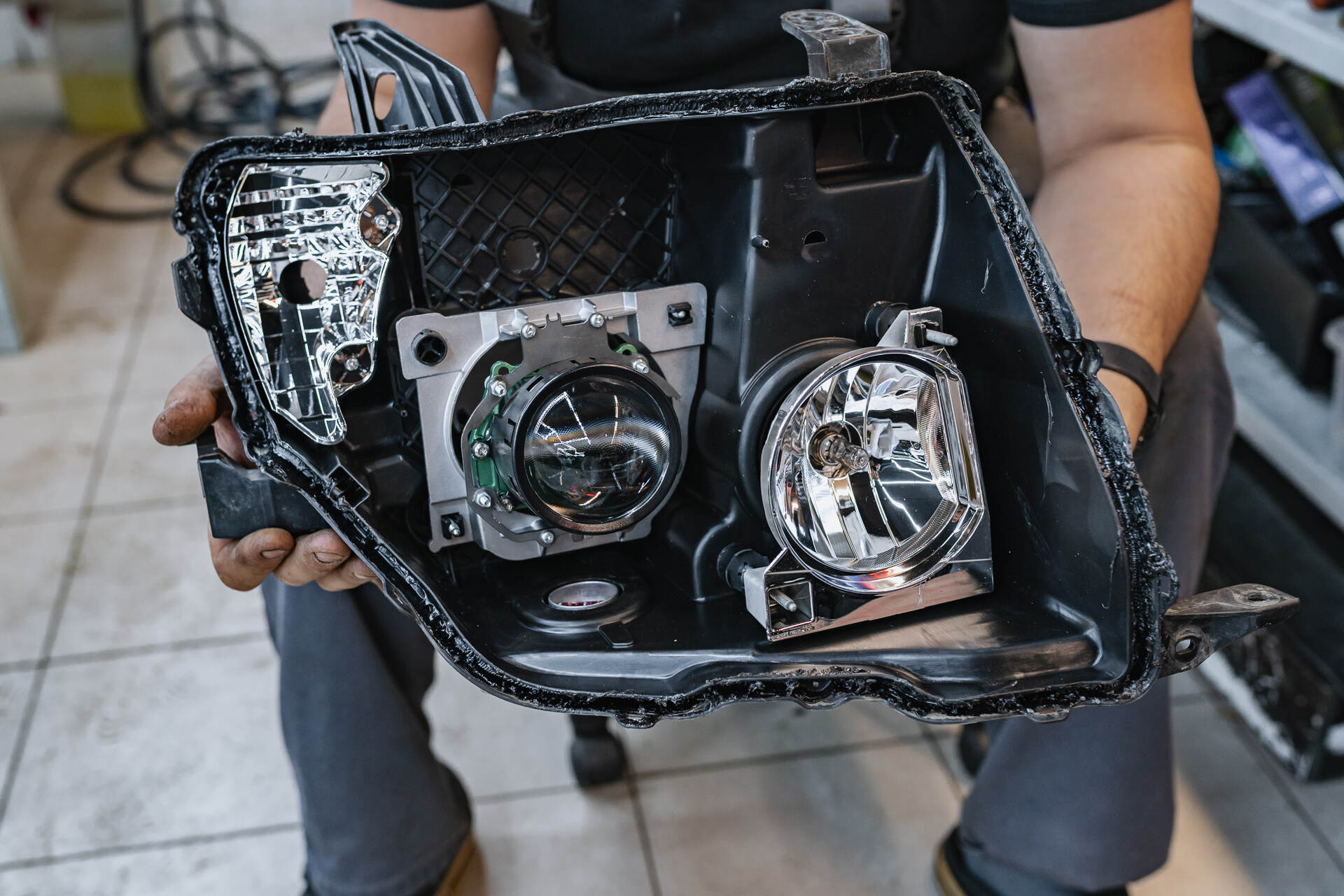 Разбираем фары и удаляем штатные линзы.Восстановление штатных линз нецелесообразно, так как ремонт пластиковых деталей дает лишь временный эффект. Оптику стоит воспринимать как расходный материал, требующий периодической замены для поддержания безопасности. Сегодня большинство водителей отдает предпочтение современным LED-модулям, превосходящим классический ксенон по эффективности. В этом кейсе мы заменим изношенные компоненты на новинку – светодиодные линзы Vision Tri-led Ultimate 4300K Soft Belarus Edition, что обеспечит мощную яркость головного света и качественное освещение дороги в любых условиях.