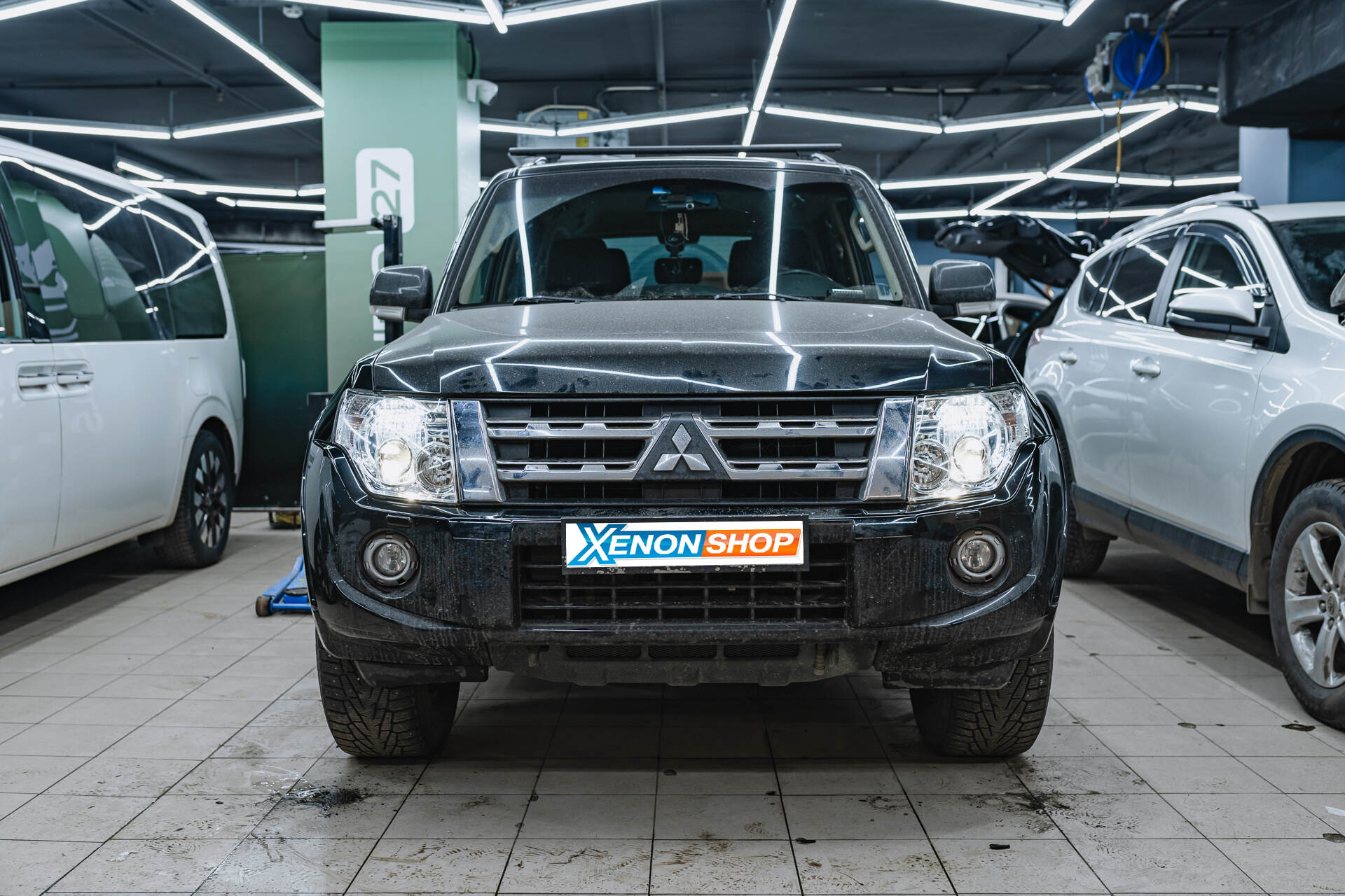Итоговая светотеневая граница и вид авто после работы.Результат превзошел ожидания: головной свет Mitsubishi Pajero IV кардинально преобразился после установки линз Vision Tri-led Ultimate 4300K Soft Belarus Edition. На смену тусклому свечению пришла мощная и широкая светотеневая граница, яркость которой несравнимо выше исходных показателей. Столь качественное освещение гарантирует отличную видимость даже на неосвещенных трассах. Не менее важен и эстетический эффект: отполированные фары в сочетании с кристально-белым потоком создают стильный контраст с черным кузовом, возвращая автомобилю премиальный вид.