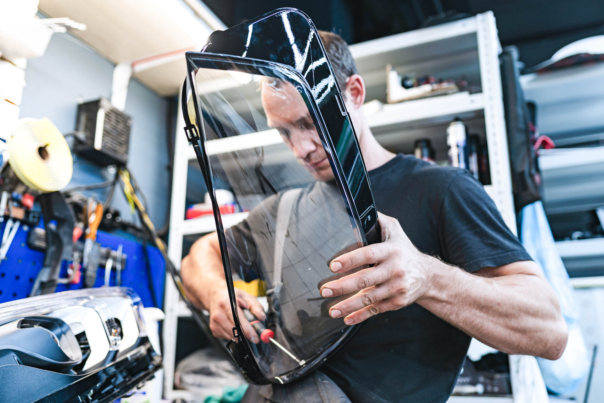 • Установка нового стекла на левую фару