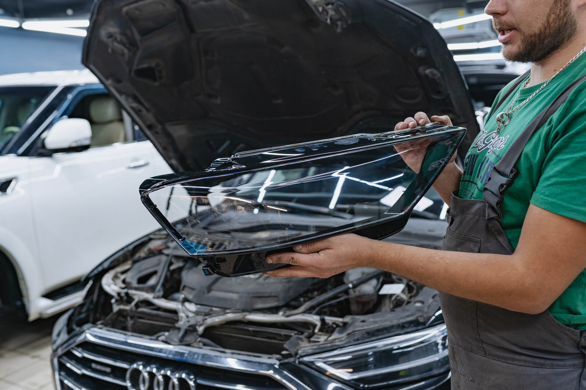 • Замена стекла правой фары Audi A8 после запотевания