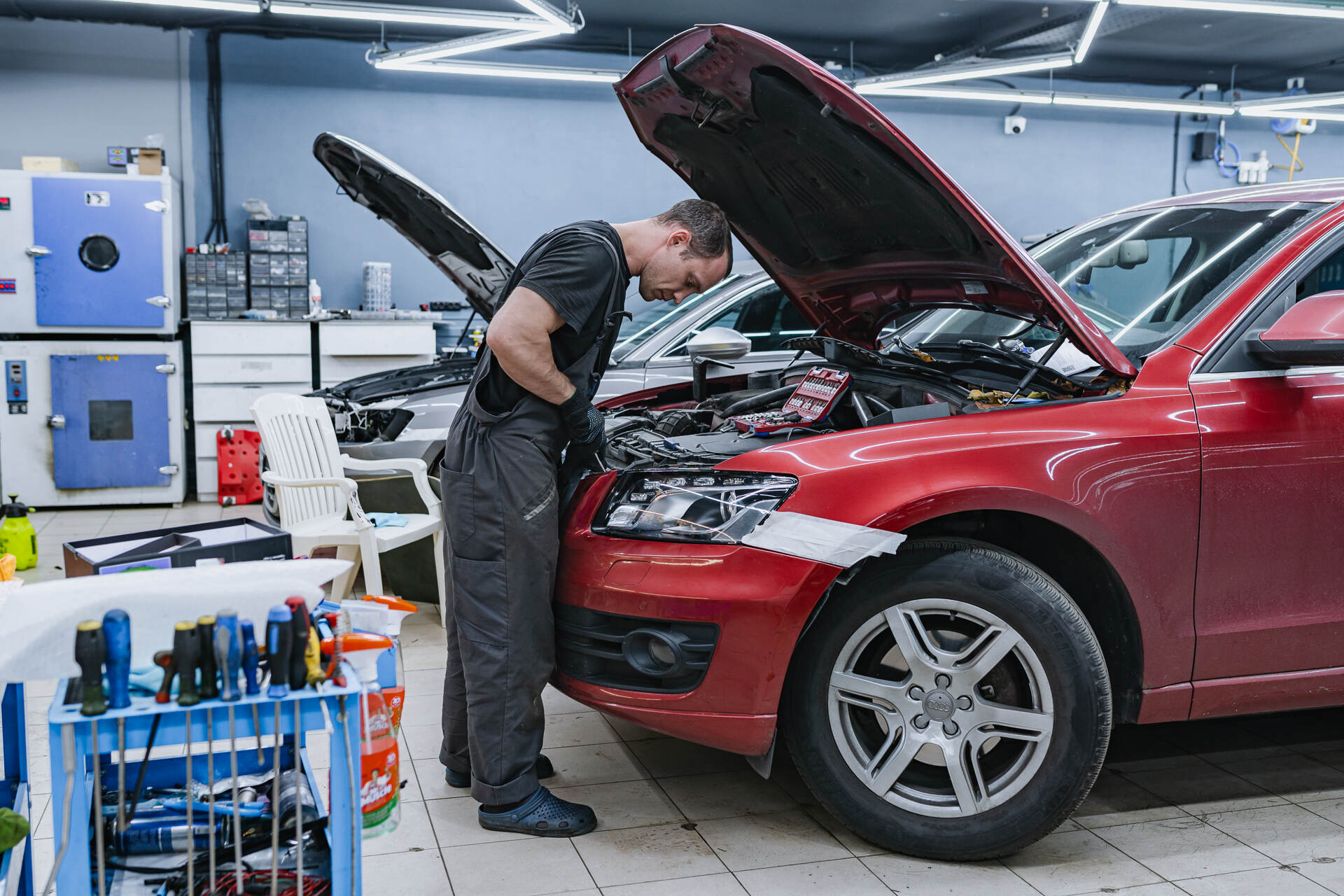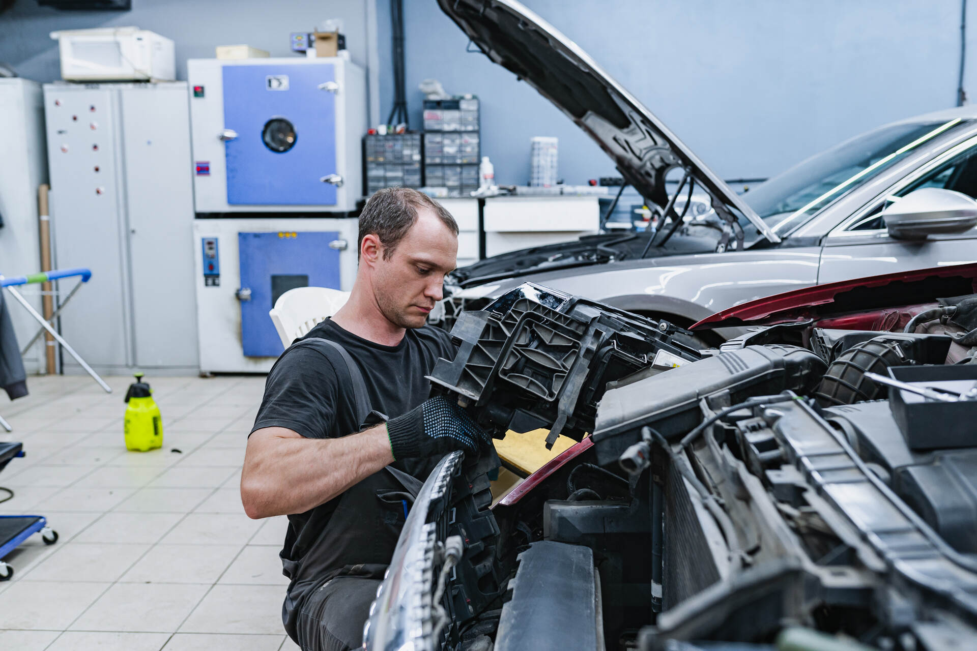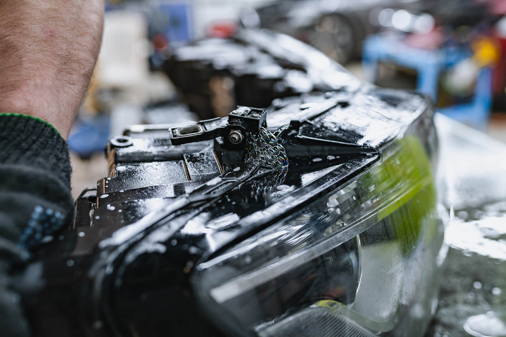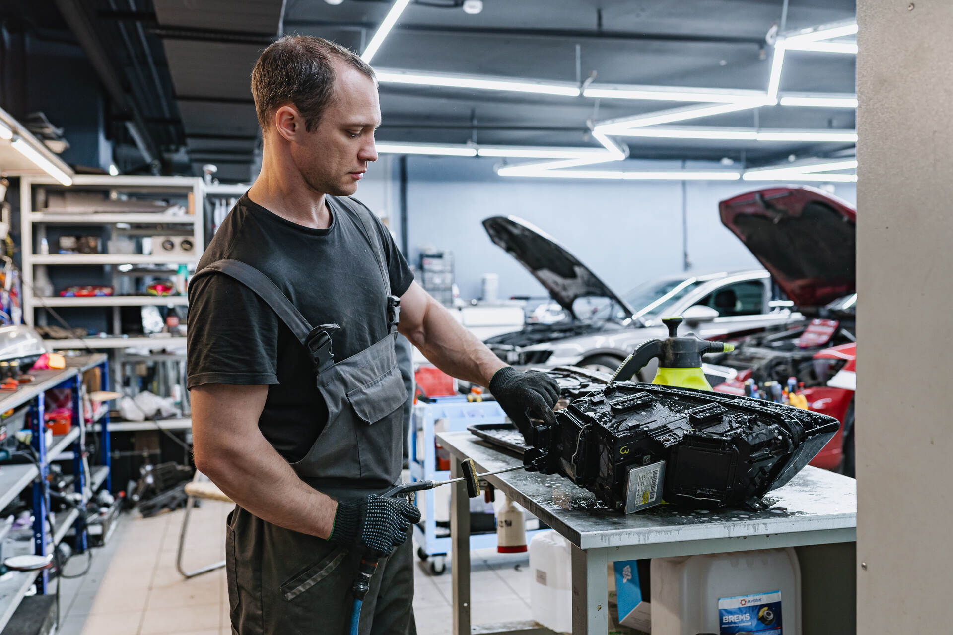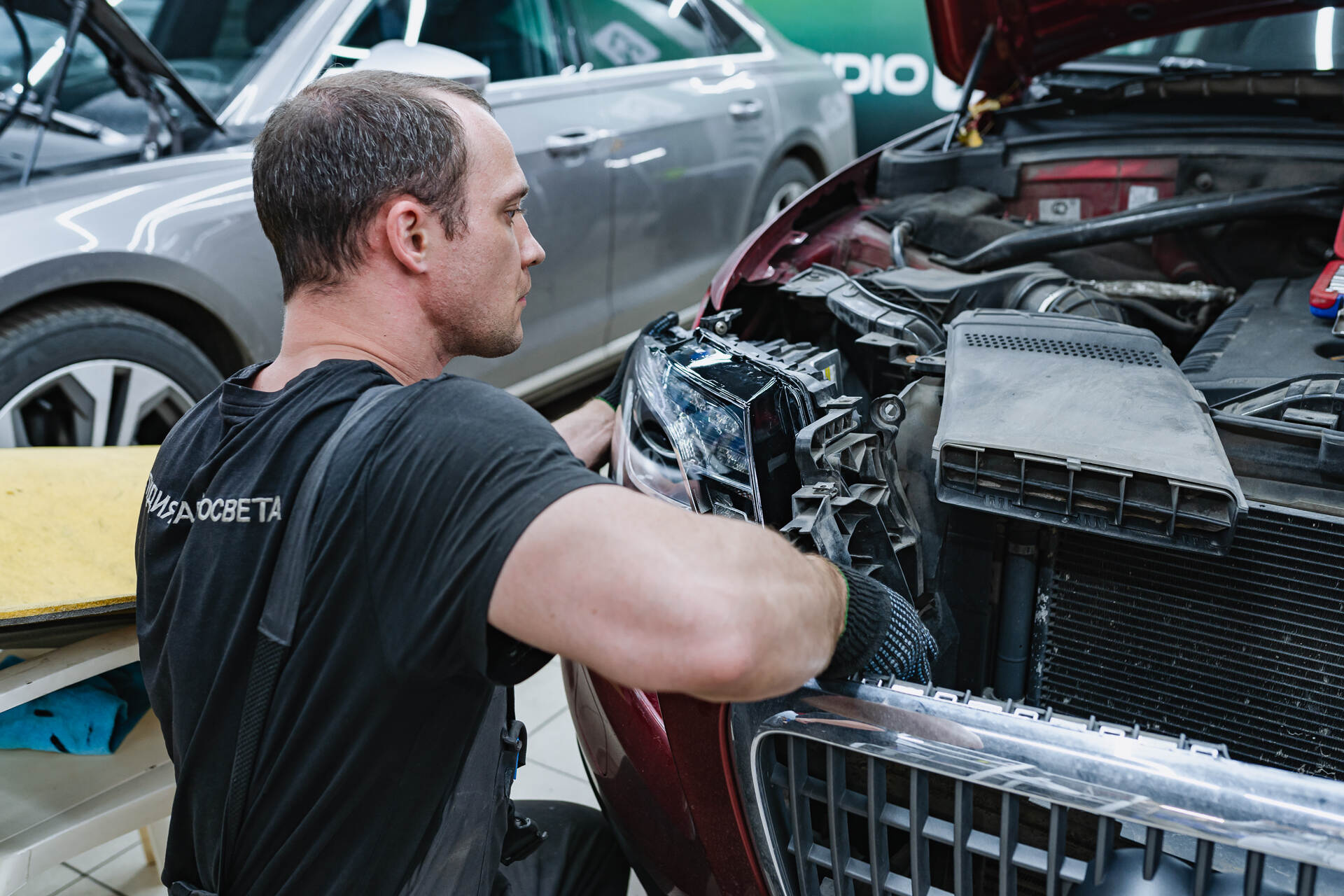 Разбираем фары. Собираем автомобиль.Для замены стекол фар Ауди КУ5 нашим специалистам требуется демонтировать переднюю часть автомобиля, после чего снятые фары отправляются на разборку. Поскольку производителем используется специальный стекольный герметик, такая оптика изначально считается неразборной, и работа над каждой фарой занимает около четырех часов. После аккуратной разборки мы полностью удаляем остатки старого герметика из посадочных пазов, затем наносим новый бутиловый уплотнитель и устанавливаем новые стекла, обеспечивая идеальную герметизацию. В нашем интернет-магазине всегда имеются в наличии стекла для популярных моделей авто, а для редких марок мы оперативно найдем необходимые детали под заказ.