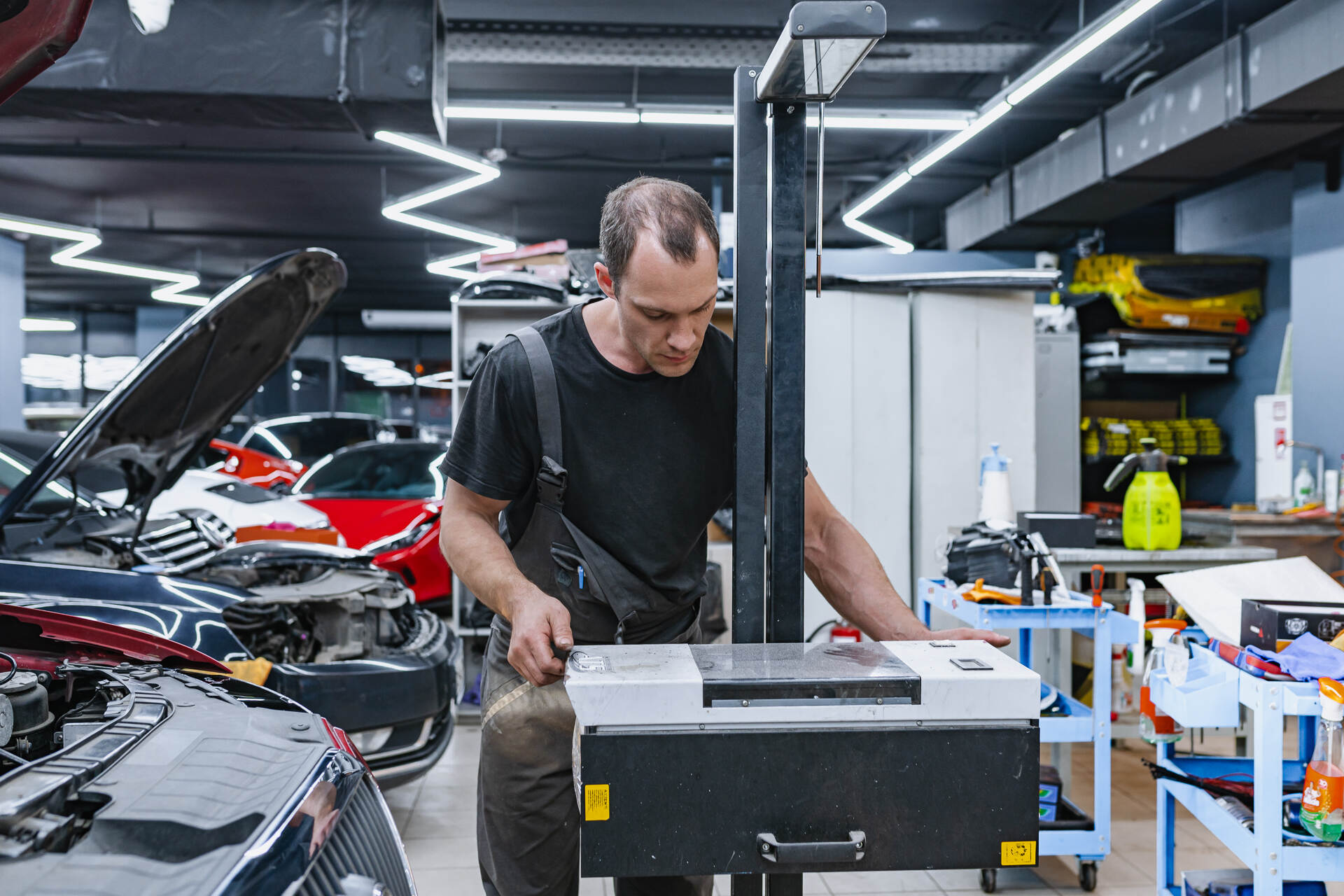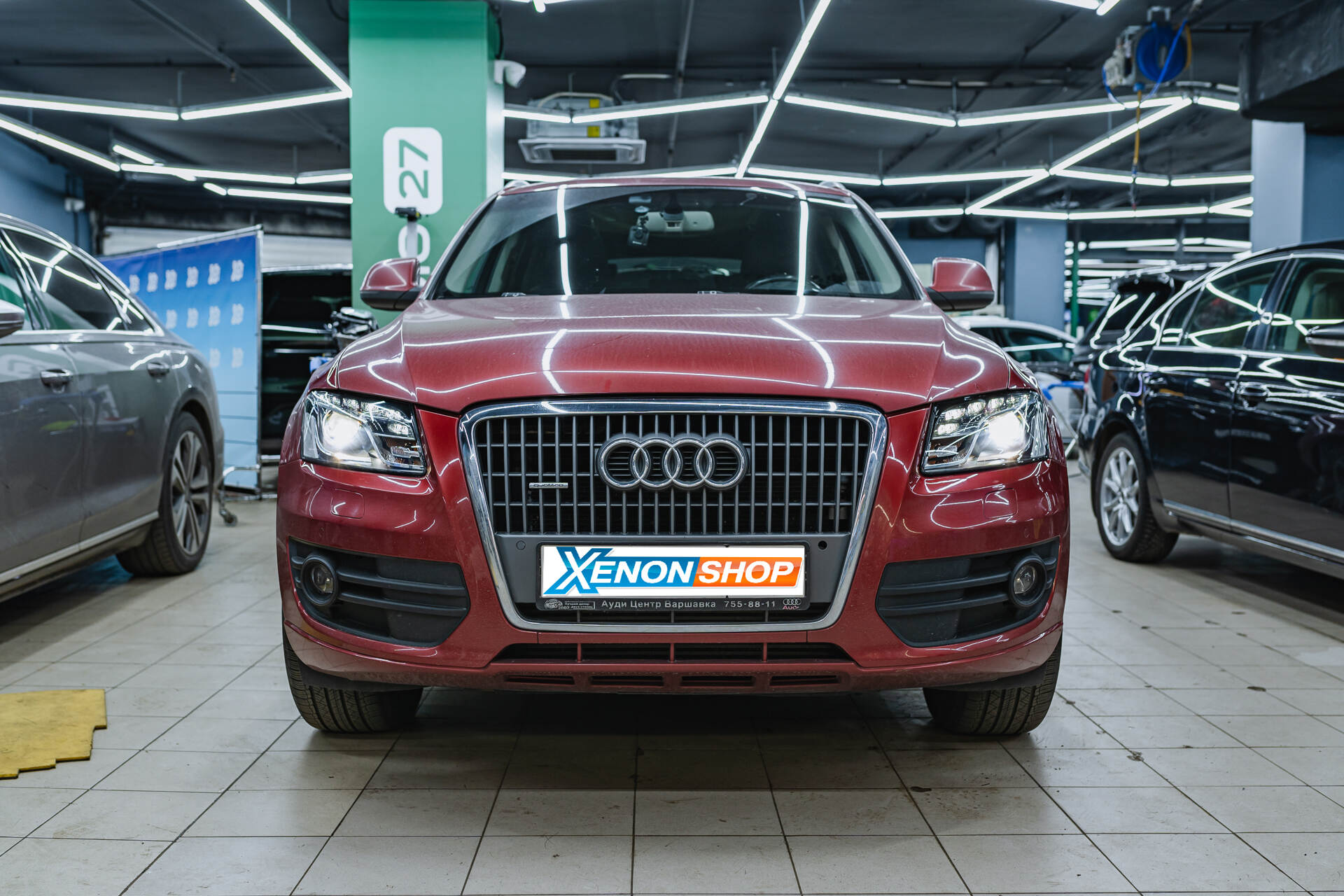 Регулируем головной свет по прибору.После завершения герметизации фары Audi Q5 (2009) возвращаются на свое законное место, и мы приступаем к их бронированию для предотвращения повторного запотевания из-за потенциального образования микротрещин в будущем. Стекла защищаются полиуретановой пленкой SunTek, которая надежно оберегает их от повреждений, сохраняя первоначальный вид на долгий срок. Результат очевиден: проблема запотевания полностью решена, а фары выглядят безупречно — без трещин и царапин, с идеальным блеском и под защитным слоем плёнки. Особенность полиуретановой плёнки заключается в ее способности к самовосстановлению: если от попадания щебня останется царапина, со временем она самостоятельно исчезнет.