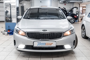 Вид KIA Cerato после установки ламп XS-Light в ближний свет.