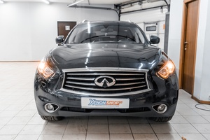 Установка ламп ДХО+поворотников на Infiniti QX70 + замена заднего хода на LED